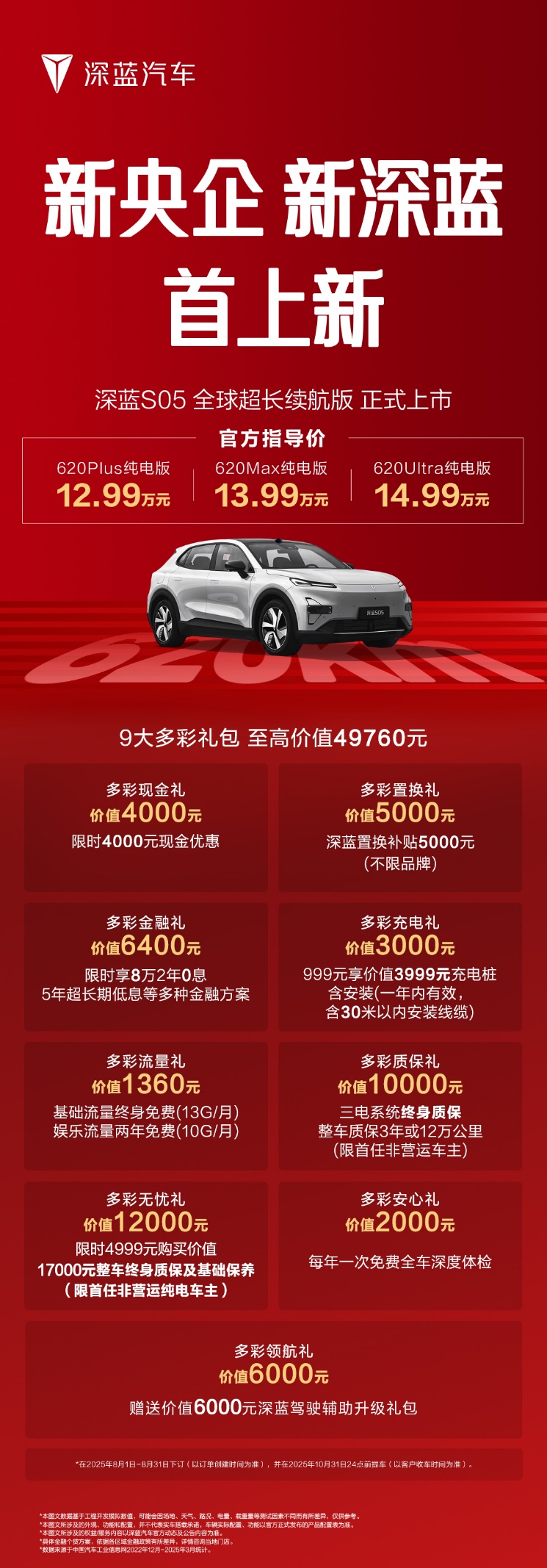 自2024年10月上市以来,深蓝S05凭借超群的价值感,迅速赢得了全球用户的广泛认可,同时也持续收到了用户对更长纯电续航的反馈。此次深蓝S05全球超长续航版的上市,正是新央企满足用户需求的最佳体现。作为新央企新深蓝首款上新车型,深蓝S05全球超长续航版不仅树立了15万内SUV续航新标杆,更依托新央企全球品质基因实现了全维进阶,使其综合产品力在同级中优势尽显。无论是偏爱长途出行的自在探索者,还是侧重日常通勤的务实者,都将收获远超期待的出行体验。