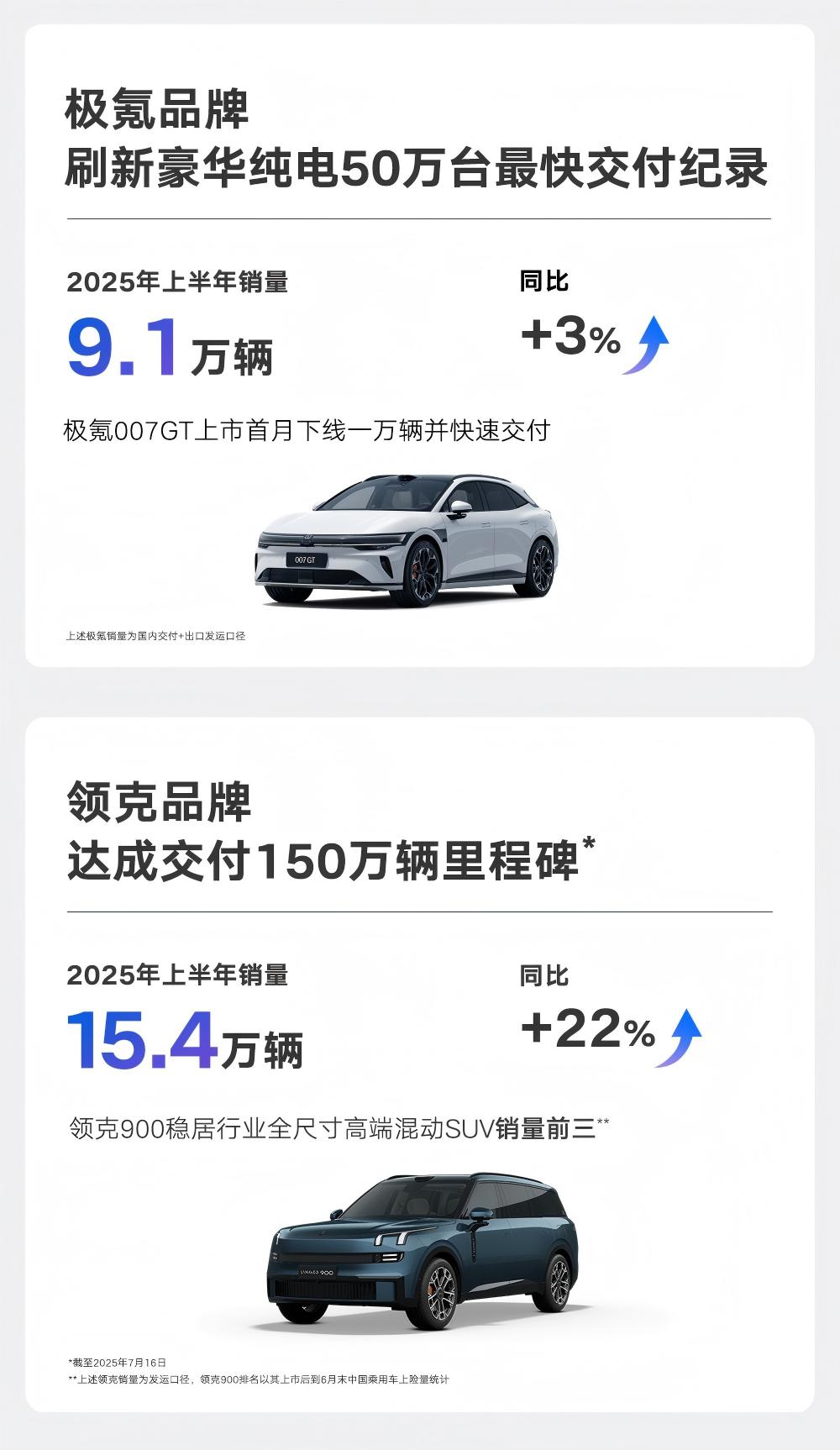 极氪与领克的表现更具标志性意义。极氪上半年营收495亿元,虽同比增幅仅2.5%,但汽车销售业务毛利率提升至16.9%,同比增加4.1个百分点,这种“营收微增、利润改善”的态势,说明已从“追求规模”转向“追求质量”。领克通过373家领克中心与241家新能源门店的组合,在燃油向新能源转型中找到了平衡,避免了单一品牌转型的剧烈波动。