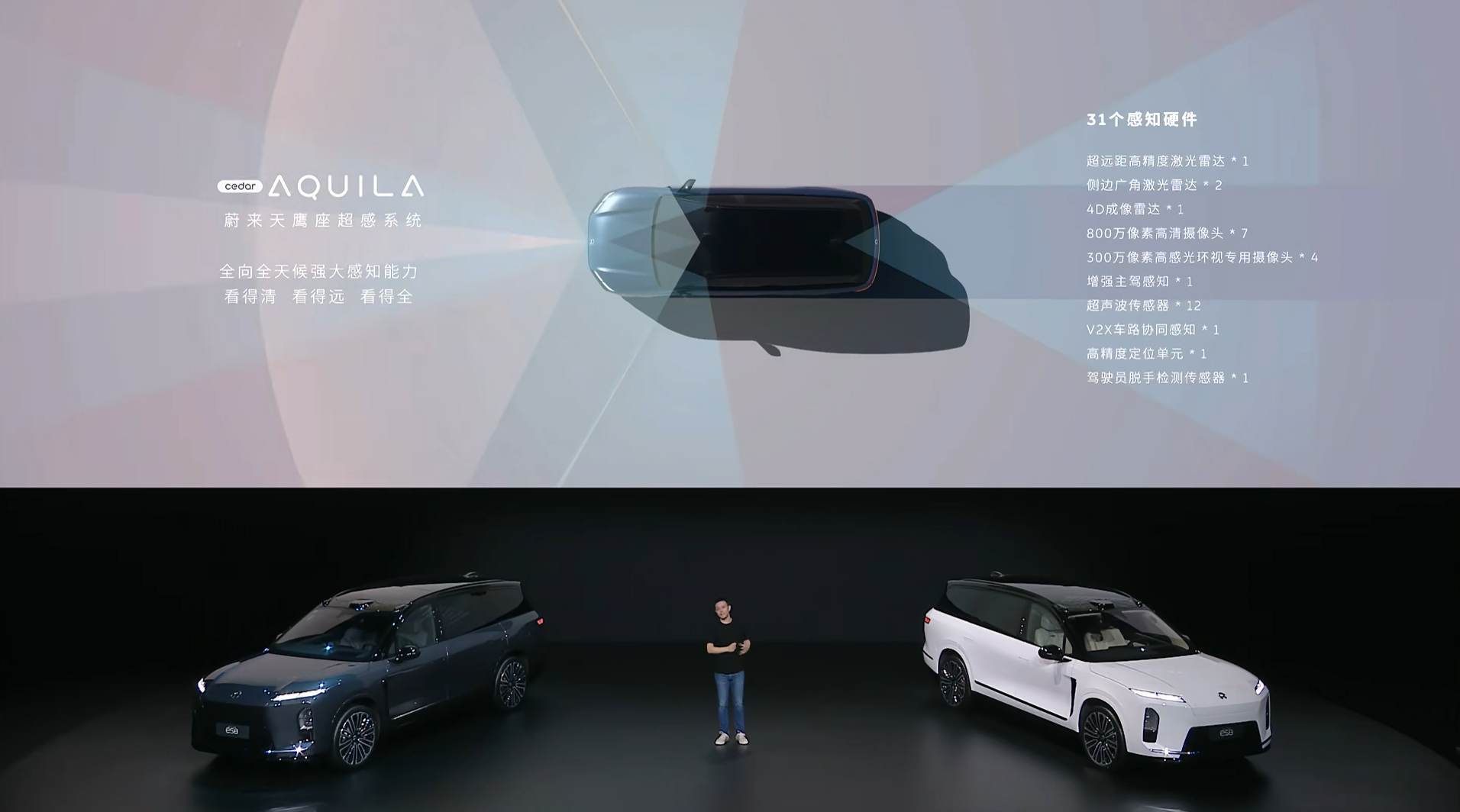 智能化方面,全新ES8搭载满血版雪松系统和SkyOS?天枢系统,神玑NX9031芯片坐镇,算力这块不用担心。31个智驾传感器,前向超远距激光雷达由自研杨戬芯片驱动,左右两侧还各加了一颗侧向激光雷达,150米的感知距离,暗光环境下也能精准识别障碍物。