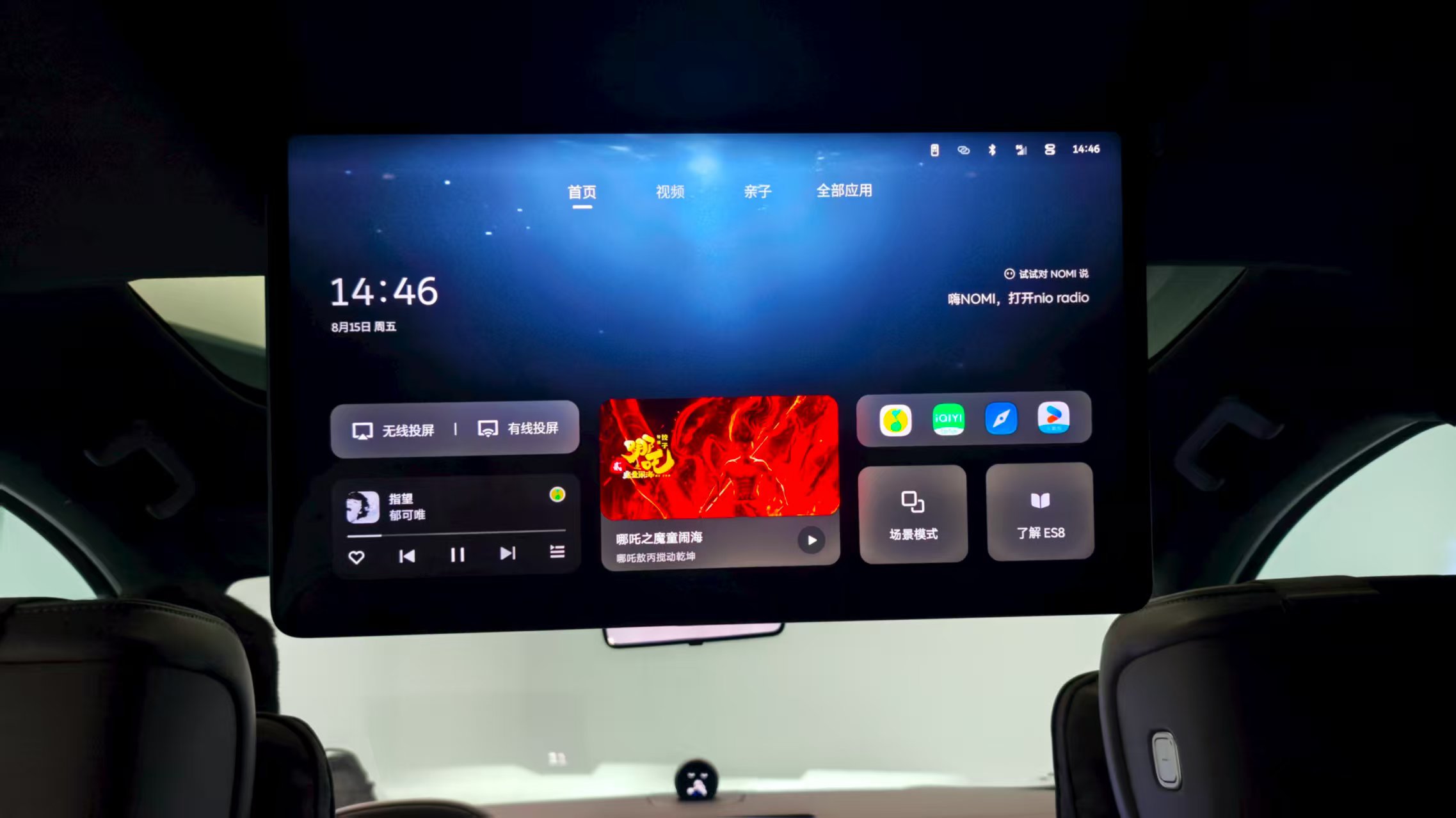 27个扬声器、2600W功率的蔚来天琴音响,虽然比不上 ET9 的九霄天琴,但音质也足够震撼。15.6英寸中控屏、8英寸二排控制屏、21.4英寸mini-LED后排天空屏,支持多屏同显,孩子在后座看动画片,大人在前排导航、听音乐互不干扰,娱乐功能直接拉满。
