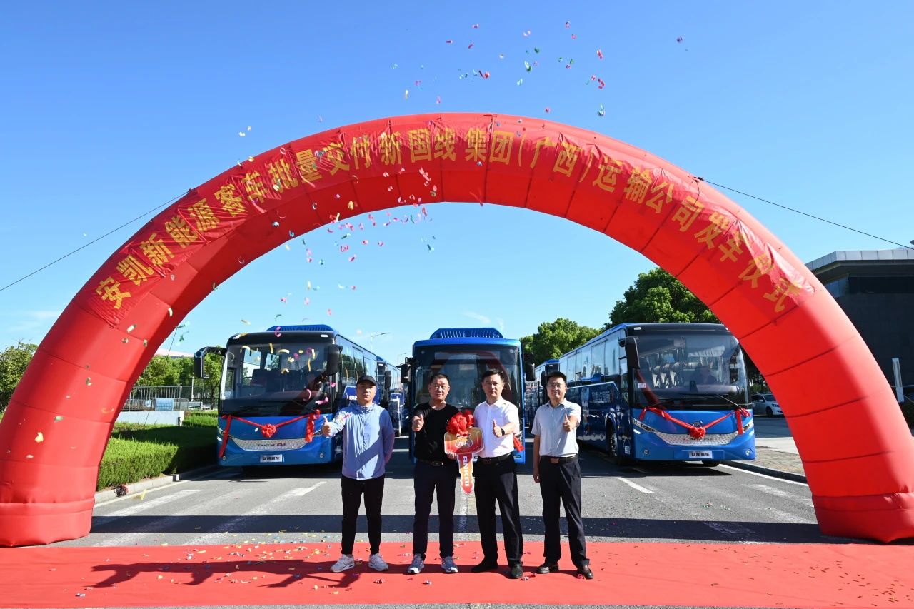 秉持对行车安全、高效运营与绿色低碳的不懈追求,此前,同属新国线集团的来宾公司就已多次批量引入安凯高品质新能源客车,并将其成功应用于城乡公交网络的升级改造及研学旅游交通服务中,引领绿色出行新风尚。