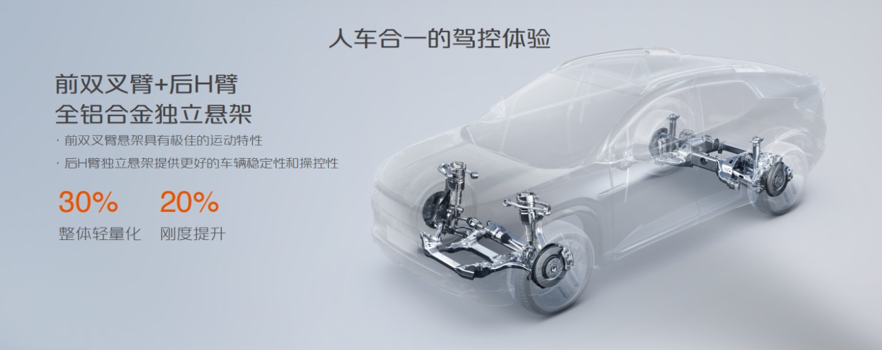 第三是人车合一的驾控体验。搭载长安天枢智能底盘、前双叉臂+后H臂全铝合金独立悬架及R-EPS转向系统,操控自如,零百刹车距离<36m,领先同级。车身结构上采用全球顶尖的前后一体化压铸技术,铝合金与高强度钢占比达到90%,A/B/C柱使用热成型钢,电池、底盘、下车身采用75%集成率的一体化设计,远超行业平均水平。双电机四驱系统不仅带来3.96秒破百、236km/h极速的超跑级性能,还兼顾了高效能耗。