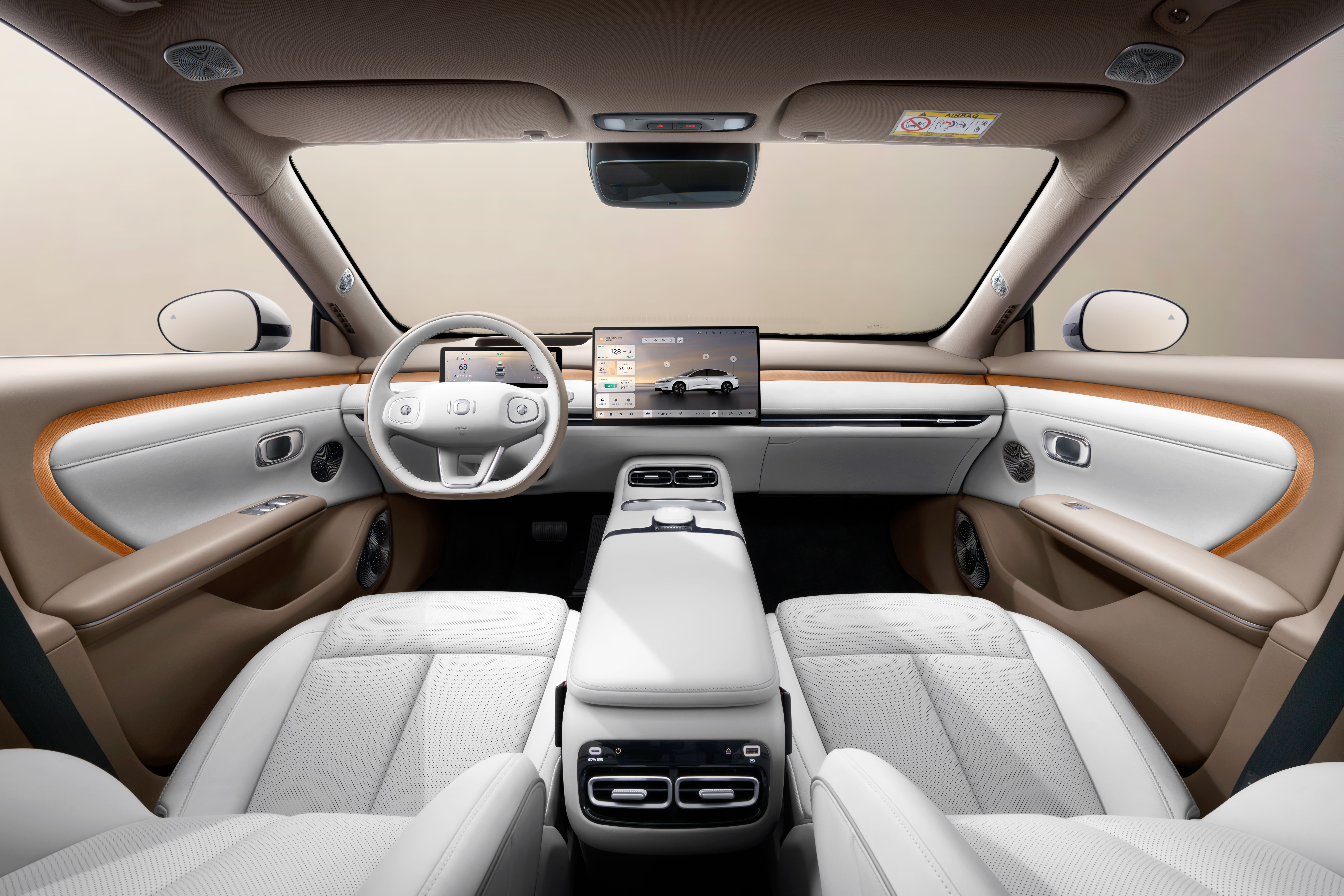 进入车内,长安启源A06采用了简约的布局设计。大尺寸悬浮式中控屏与全液晶仪表搭配,再加上三辐式方向盘和怀挡式换挡,营造出浓厚的科技氛围。空调出风口采用贯穿式设计,让内饰看起来更加简洁大方。