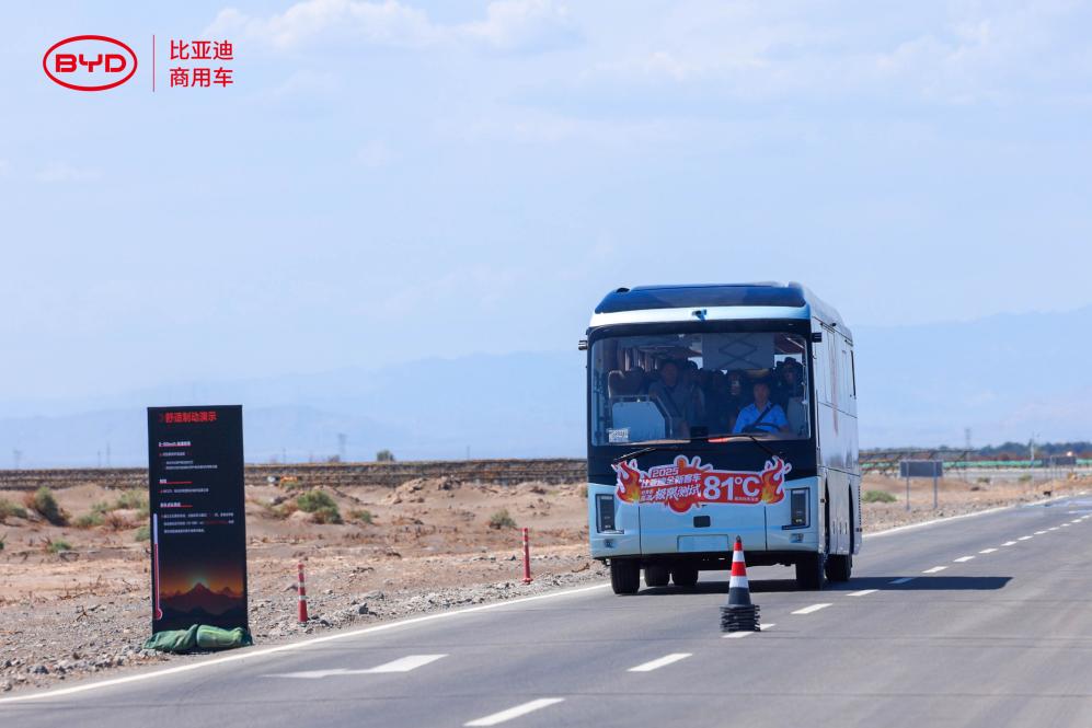 从戈壁荒漠的烈日炙烤到城市路面的热浪蒸腾,比亚迪始终将夏测视作产品开发验证中不可撼动的 “必修课”。在地表温度高达81.7℃的新疆吐鲁番,比亚迪携全新纯电动客车C11开展高温测试,并同台展示包括公交、物流、港口等多场景应用的17款主力车型。多位行业专家、权威媒体亲临现场,见证比亚迪商用车在严苛条件下的可靠品质。