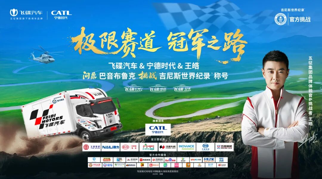 2025年9月8日,在新疆巴音布鲁克“魔鬼赛道”之巅,飞碟汽车携手宁德时代,并与世界冠军王皓合作,成功完成“驾驶电动厢式轻卡穿越最大海拔高度差”吉尼斯世界纪录挑战,向世界展现了中国新能源商用车的顶尖实力!