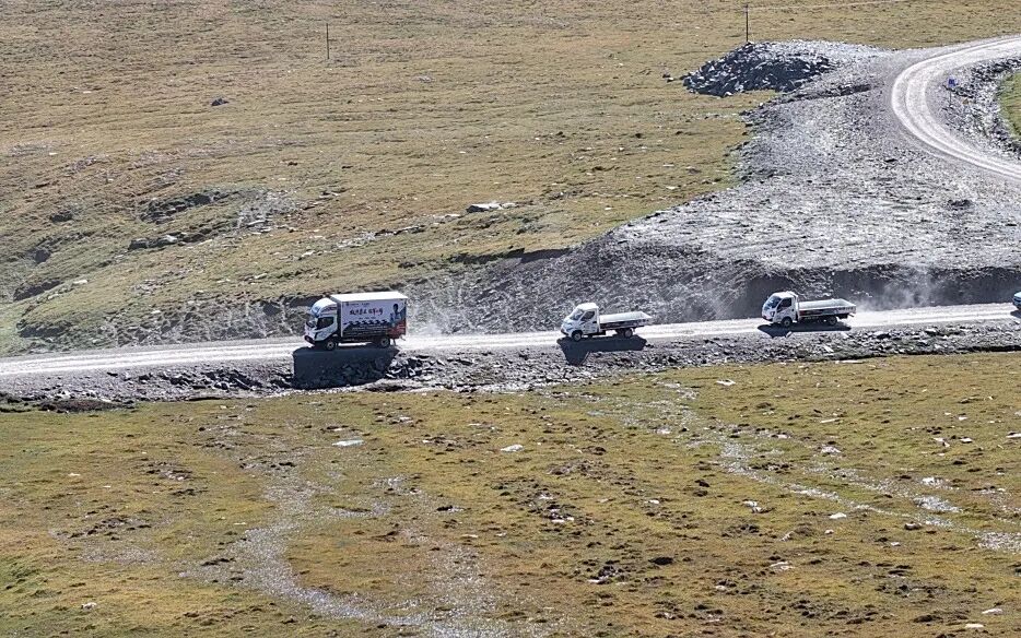发车指令响起,三车同时冲出起跑线!王皓驾驶飞碟EW7完成首段15公里接力,在连续弯道中行驶稳健;韩高军接续后续20公里征程,电池在3000米高海拔依然表现稳定;飞碟汽车研发总监张克强完成最终极限冲顶,车辆表现出超强操控性与近乎零颠簸的平稳通过性。