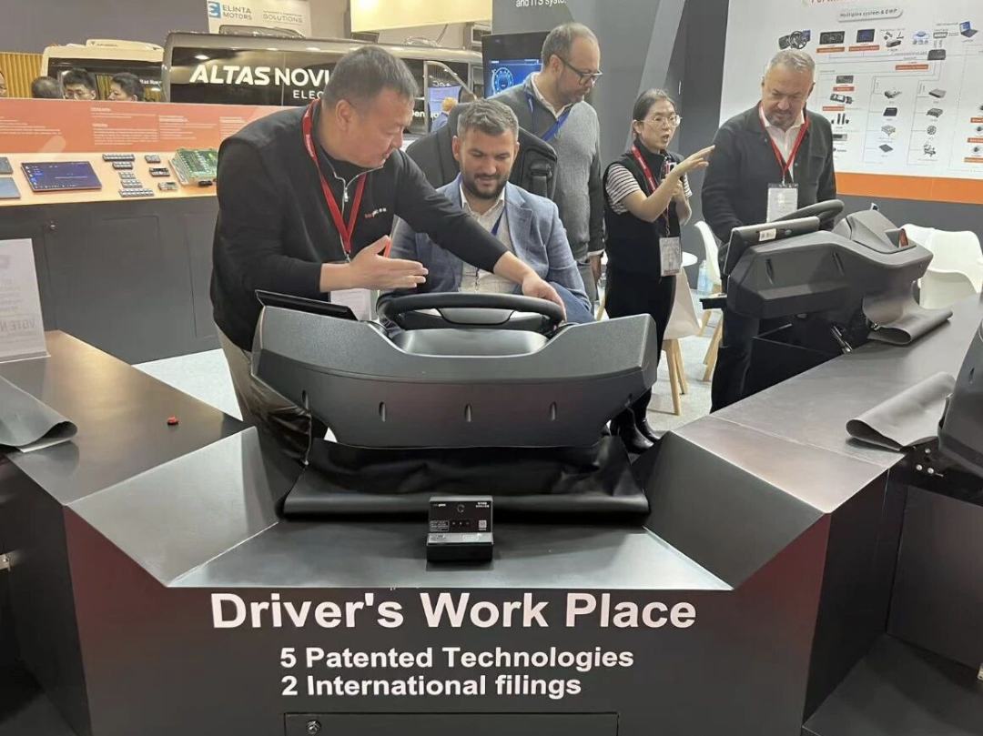 此次全球首款商用车电动调节数字驾驶舱的亮相,标志着商用车驾驶舱正式迈入“从手动操作到电动调节”的跨越式发展阶段。除这款明星产品外,森鹏电子此次还展出了公交数智化解决方案,也为商用车行业提供了全链路的智能化升级路径。