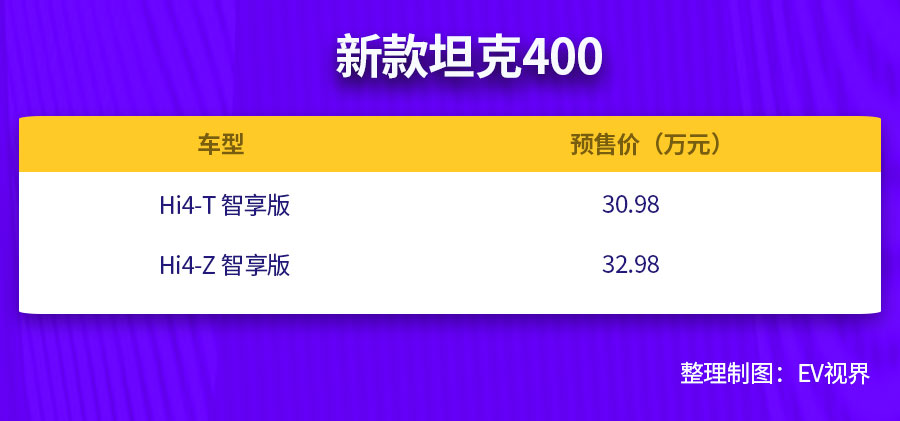 10月21日,坦克品牌官宣的新款坦克400预售信息,直接将焦点锁定在30.98万(Hi4-T 智享版)与32.98万(Hi4-Z 智享版)的定价区间。