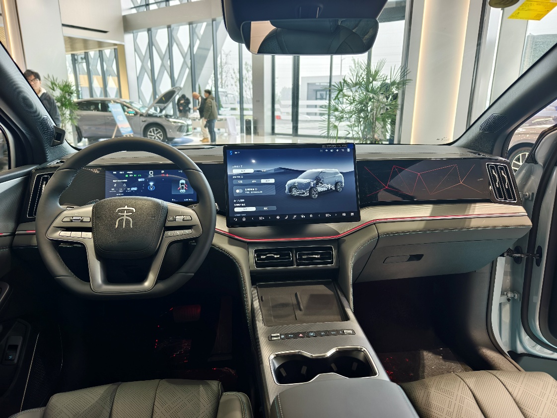 不仅如此,这款新车在配置方面也紧跟潮流,与2026款宋L DM-i保持同步,换装了集成式豪华电子怀挡,操作起来更加便捷、高级。同时,还新增了一系列实用且有趣的功能,如手车互联,、游戏中心,、无麦K歌功能。这些新增功能的加入,使得整车的舒享体验实现了全方位的进阶。