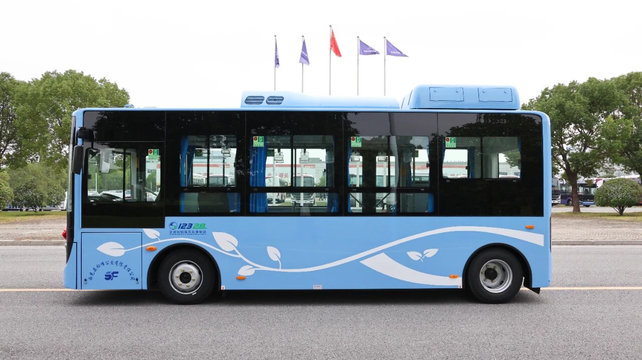 JS6709GHBEV定位7米级新能源公交,车身尺寸为长7米、宽2.35米、高3.12米,采用全承载车身结构,兼具轻量化与高刚性,既能灵活穿梭于县域道路,又能保障行驶安全性。