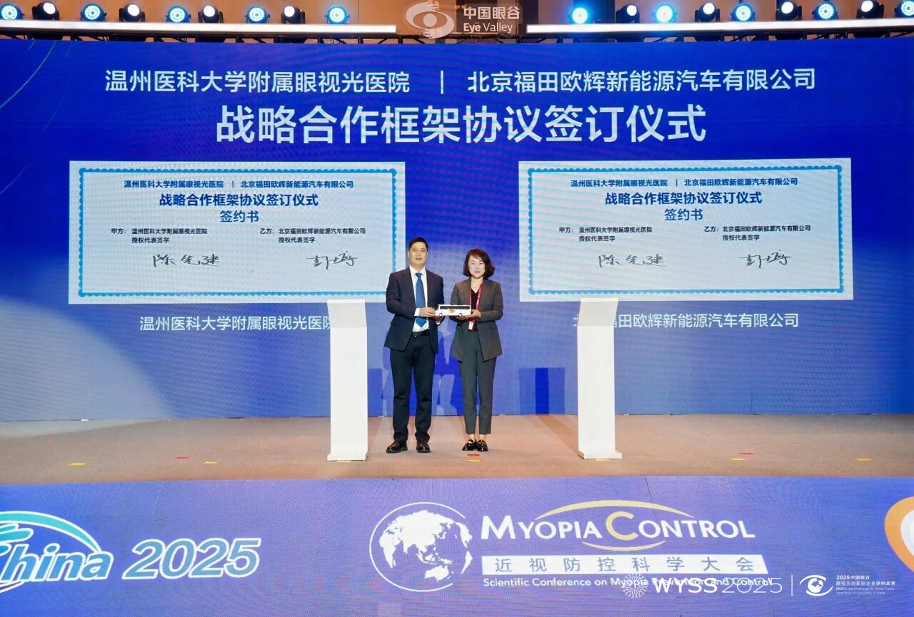 在“2025中国近视防控科学大会”开幕式上,温州医科大学附属眼视光医院与北京福田欧辉新能源汽车有限公司正式签署战略合作框架协议。此次跨界携手既是响应“健康中国”战略的具体实践,更是落实“十五五”规划中“医疗卫生强基工程”要求的创新举措,为优化眼健康服务体系、推动优质医疗资源下沉注入强劲动能。