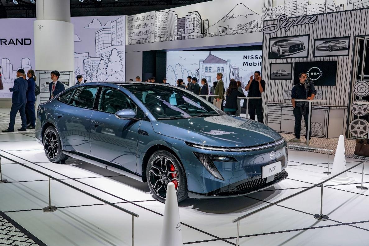 日产“最家”纯电轿车N7在2025年日本移动出行展