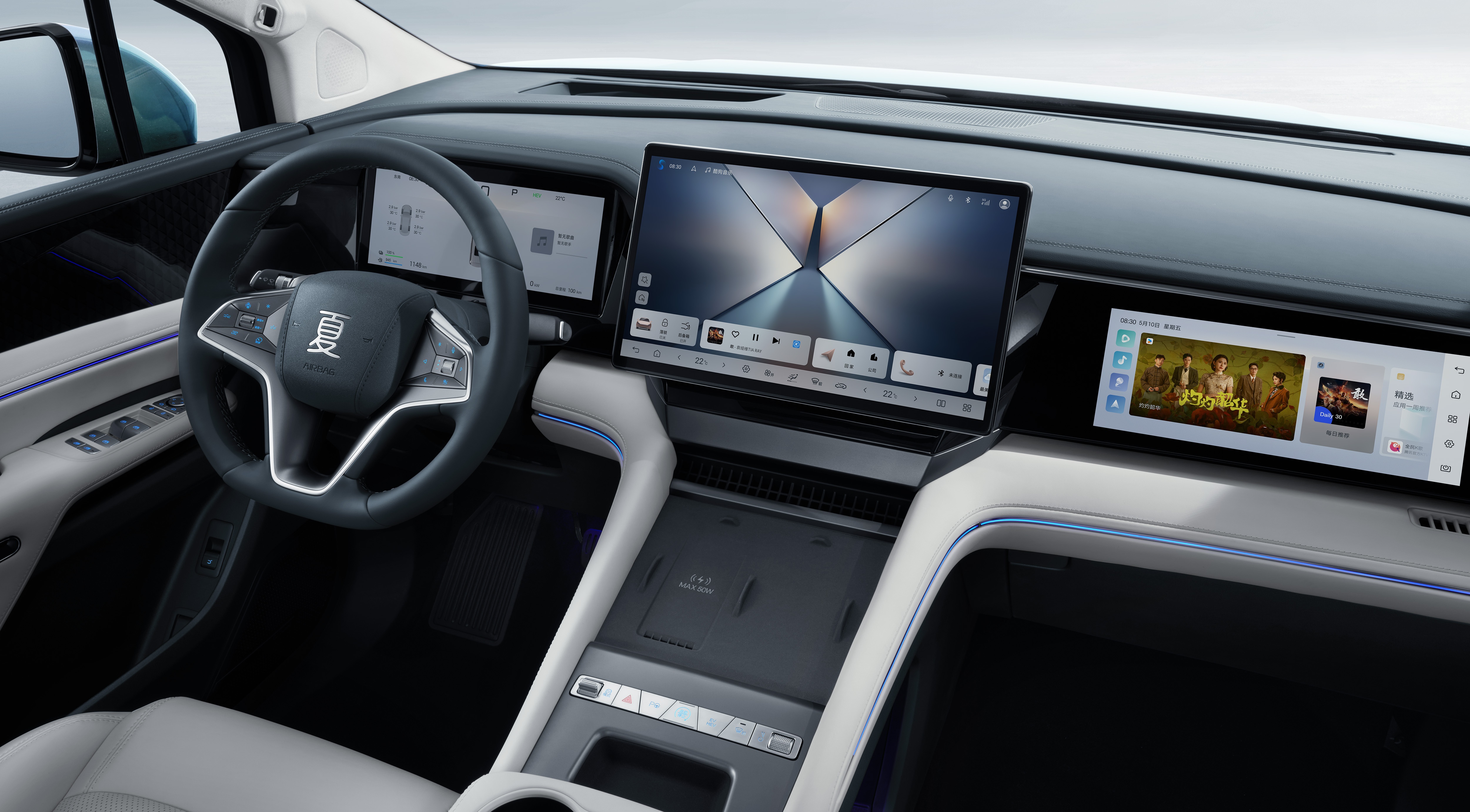 细节上,50W无线充电面板支持快充,实测iPhone15从20%充至80%仅需40分钟;方向盘加热功能在北方冬季实用性极高,金属质感按键的按压反馈清晰,避免了误触。