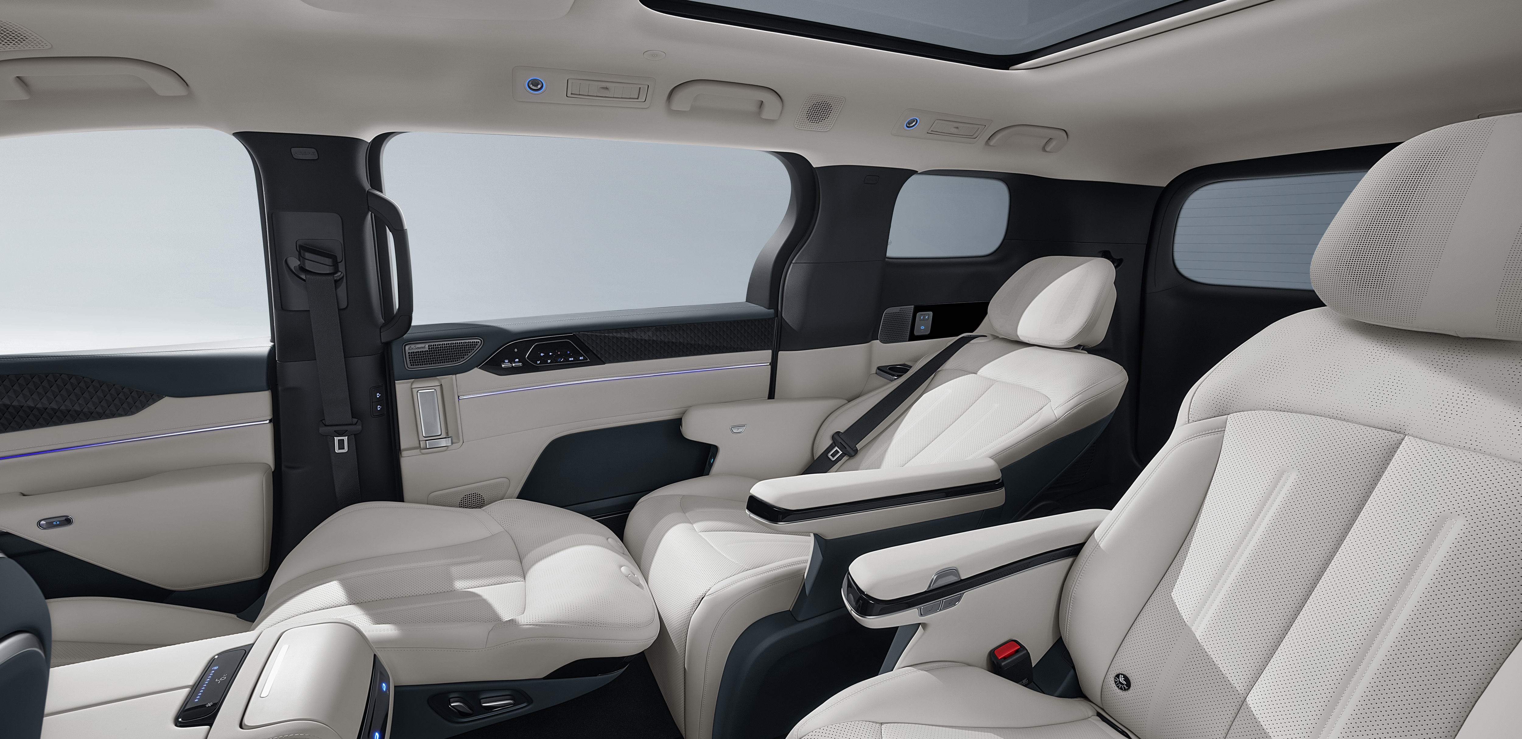 二排独立座椅是舒适核心,腿托可调节角度达150度,配合按摩功能,长途乘坐2小时也无明显疲劳感。小桌板的承重能力达5kg,放置笔记本电脑办公或孩子的绘本都很稳,头枕音响则能实现“私人听音”,避免打扰其他乘客。