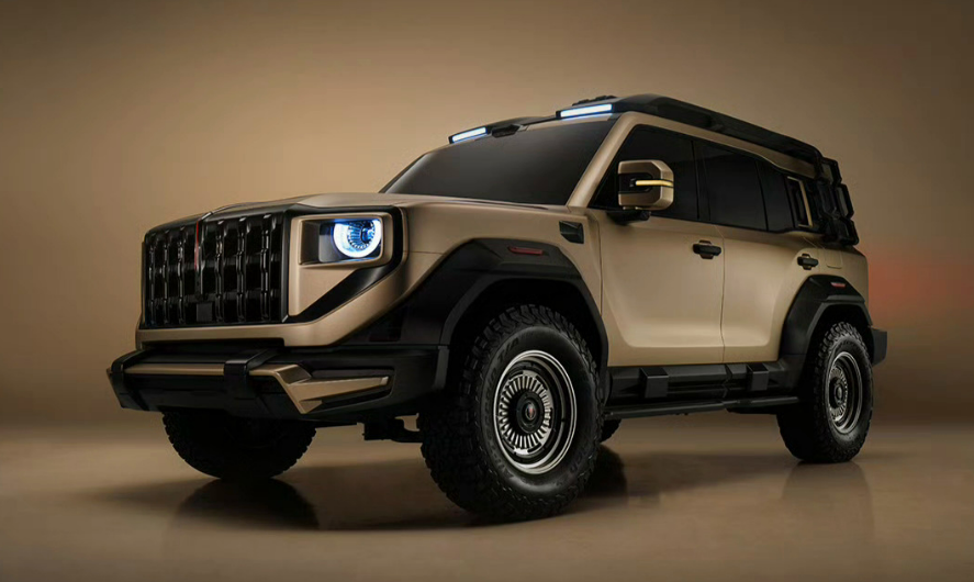 可以看到,新车外观设计极具冲击力,粗壮的黑色格子前脸、硬朗的保险杠、宽大的轮眉搭配专业越野轮胎,硬派气息扑面而来,完全不输国际豪华越野品牌。