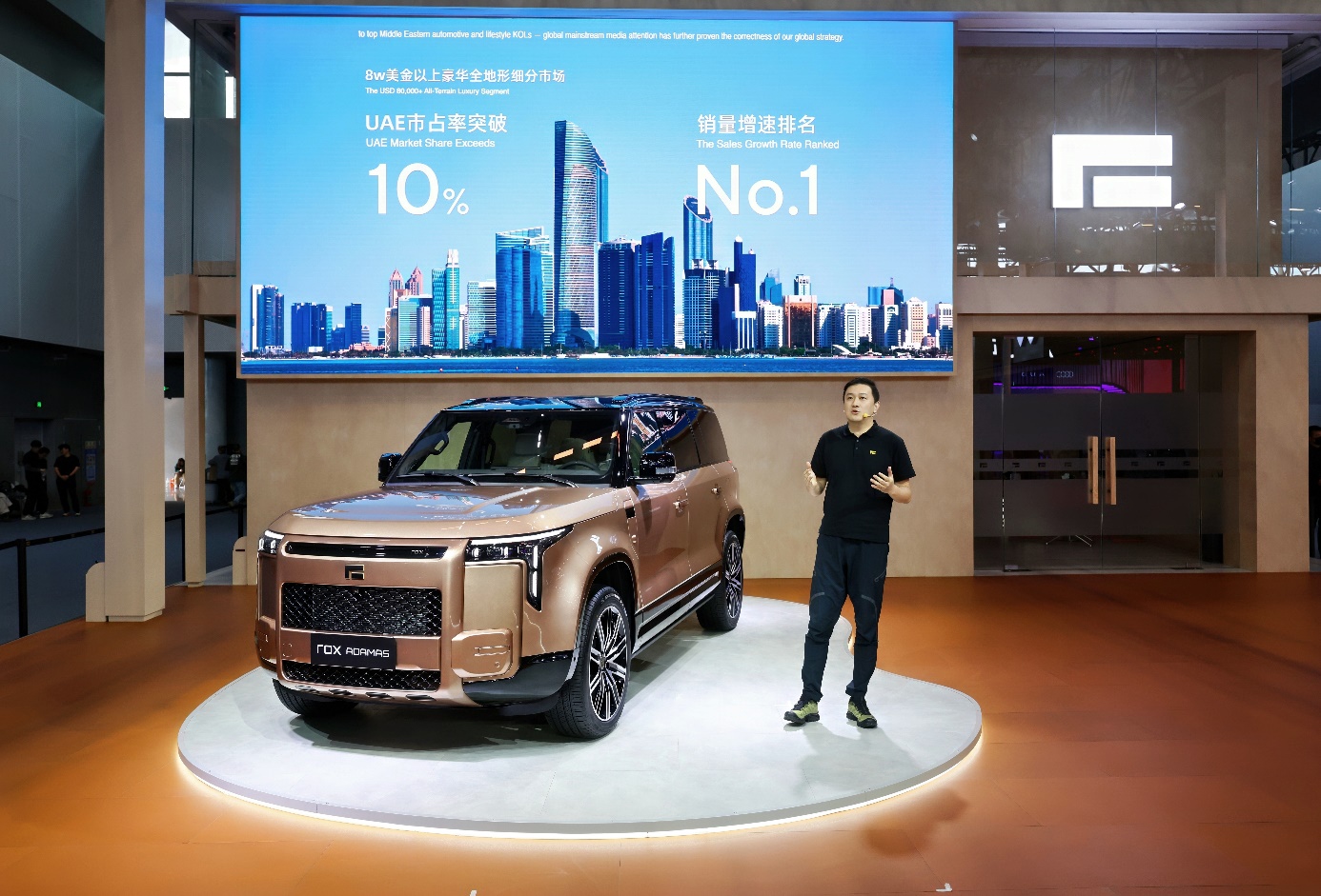 2025年,极石汽车全球化布局成效显著。截至目前,品牌已成功进入近40个国家市场,形成覆盖中东、中亚、北非等重点区域的销售网络,并连续10个月实现销量稳健增长。在以豪华著称的阿联酋市场,极石汽车在8万美金以上豪华全地形细分领域中市占率突破10%,销量增速位列第一,展现出强劲的发展势头。本届广州车展期间,极石汽车进一步拓展全球市场,与来自喀麦隆、突尼斯、摩洛哥的优质合作伙伴完成签约,持续推进渠道网络的全球化建设。