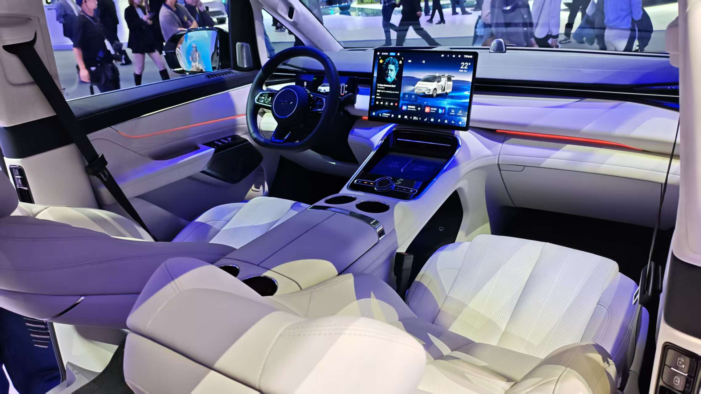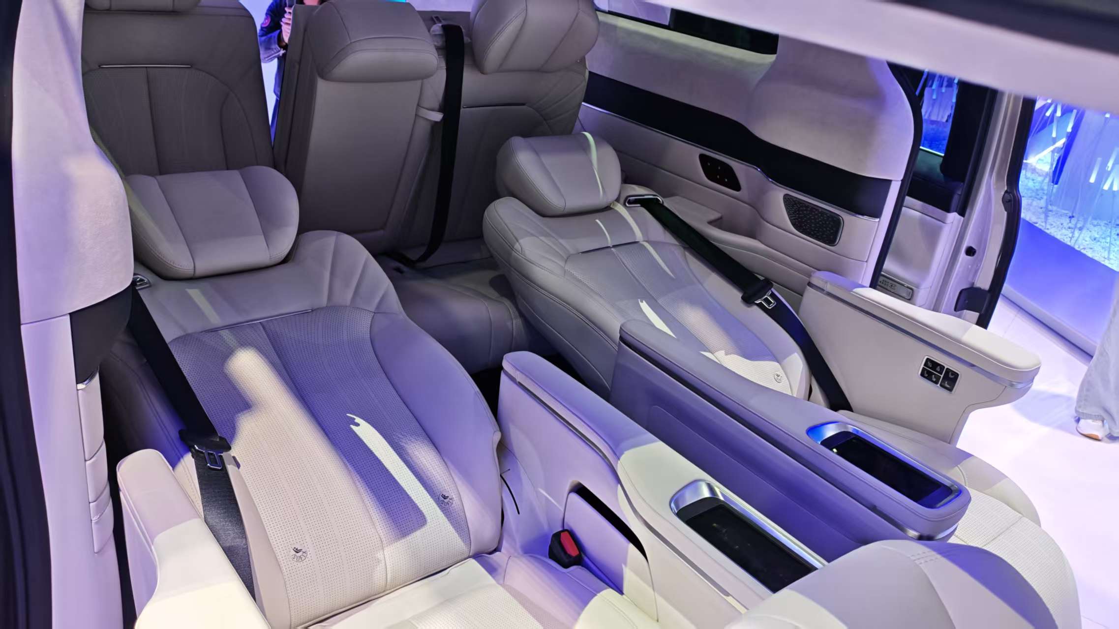 空间表现堪称同级标杆,车内得房率高达91.8%,有效面积达8.41平方米,有效长度3.97米。二排与三排腿部空间均超1013mm,车内宽度1645mm、高度1334mm,配合890mm超宽侧滑门开口与481mm二排侧通道,乘客进出极为便捷。三排座椅坐垫宽度达1290mm,靠背可调节至137°,6/8座版本更支持一键180°躺平,彻底摆脱“三排小板凳”痛点。新车提供6/7/8三种座椅布局,适配多元用车场景。