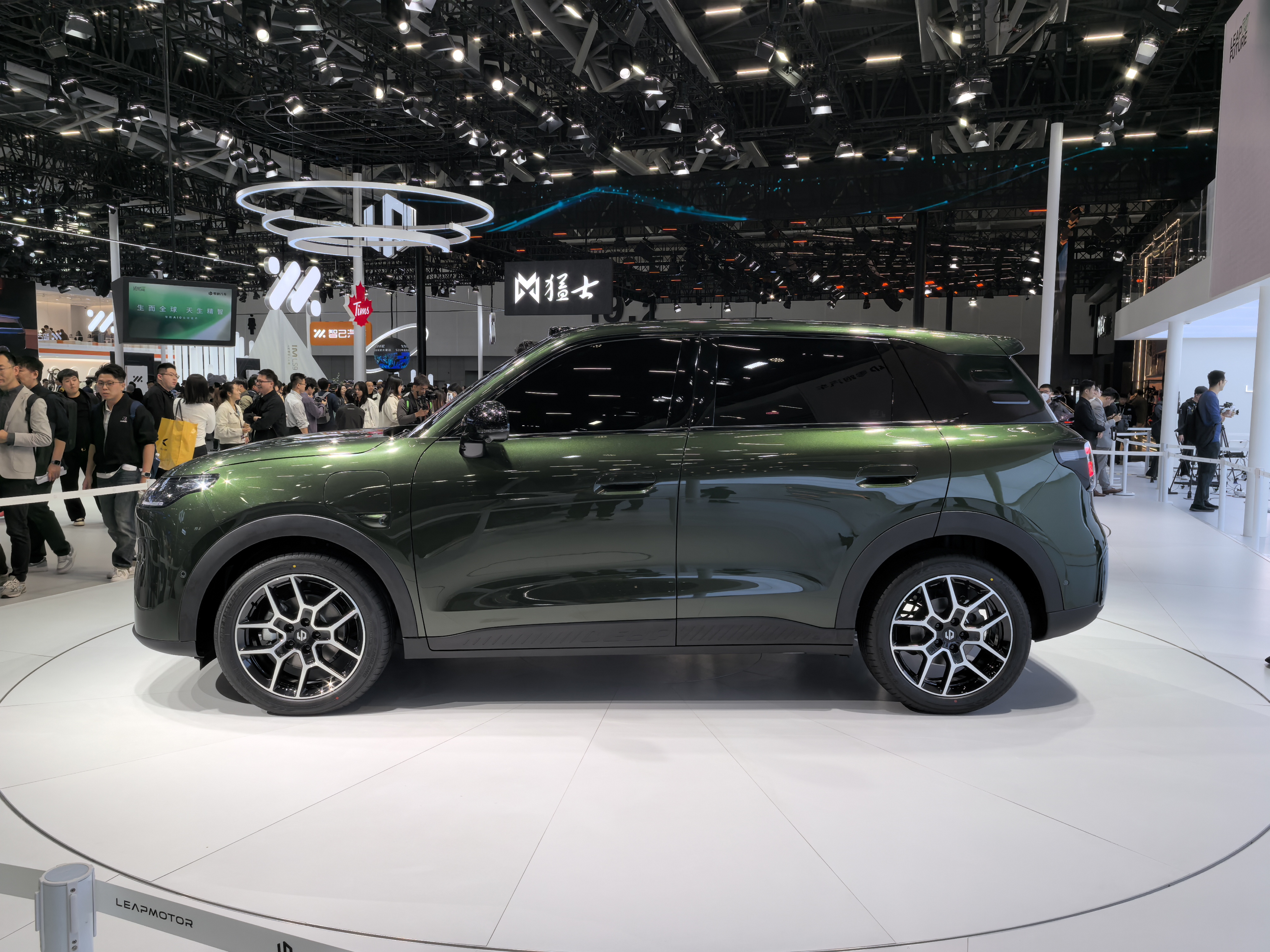 车身侧面看着挺优雅,悬浮式车顶把B、C、D柱都隐藏了,整体更显简洁。D柱上的横向饰条不仅好看,还能改善气流、优化风阻,能看出零跑在细节上用了心。18寸轮圈配在这台小型SUV上,一点不显小气,比例很协调。