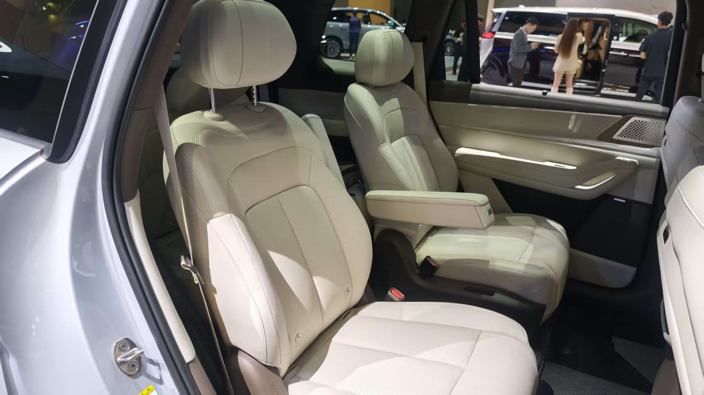 座椅是2+2+2六座布局,主驾有主动侧翼调节,副驾直接上零重力女王座椅,前排和二排都带通风、加热、按摩,长途坐着也舒服。二排还有单侧9档可调扶手和电动腿托(副驾侧),细节到位。最惊喜的是第三排,居然也有加热和电动调节,还能前后挪100mm,空间灵活性拉满,能切换前排大床、满员舒享、四人舒享、满员满载这些模式,全家出行不用凑活。