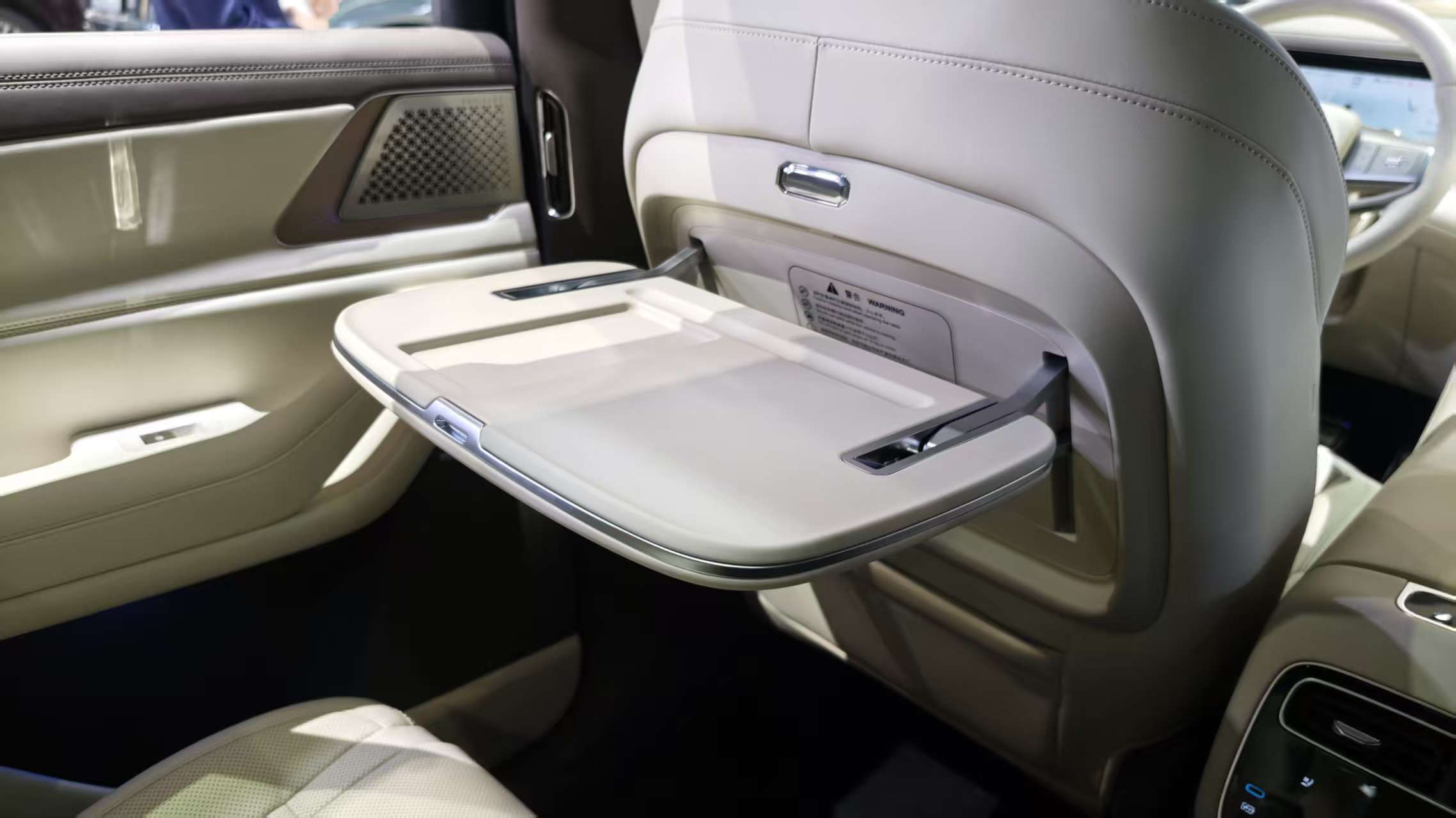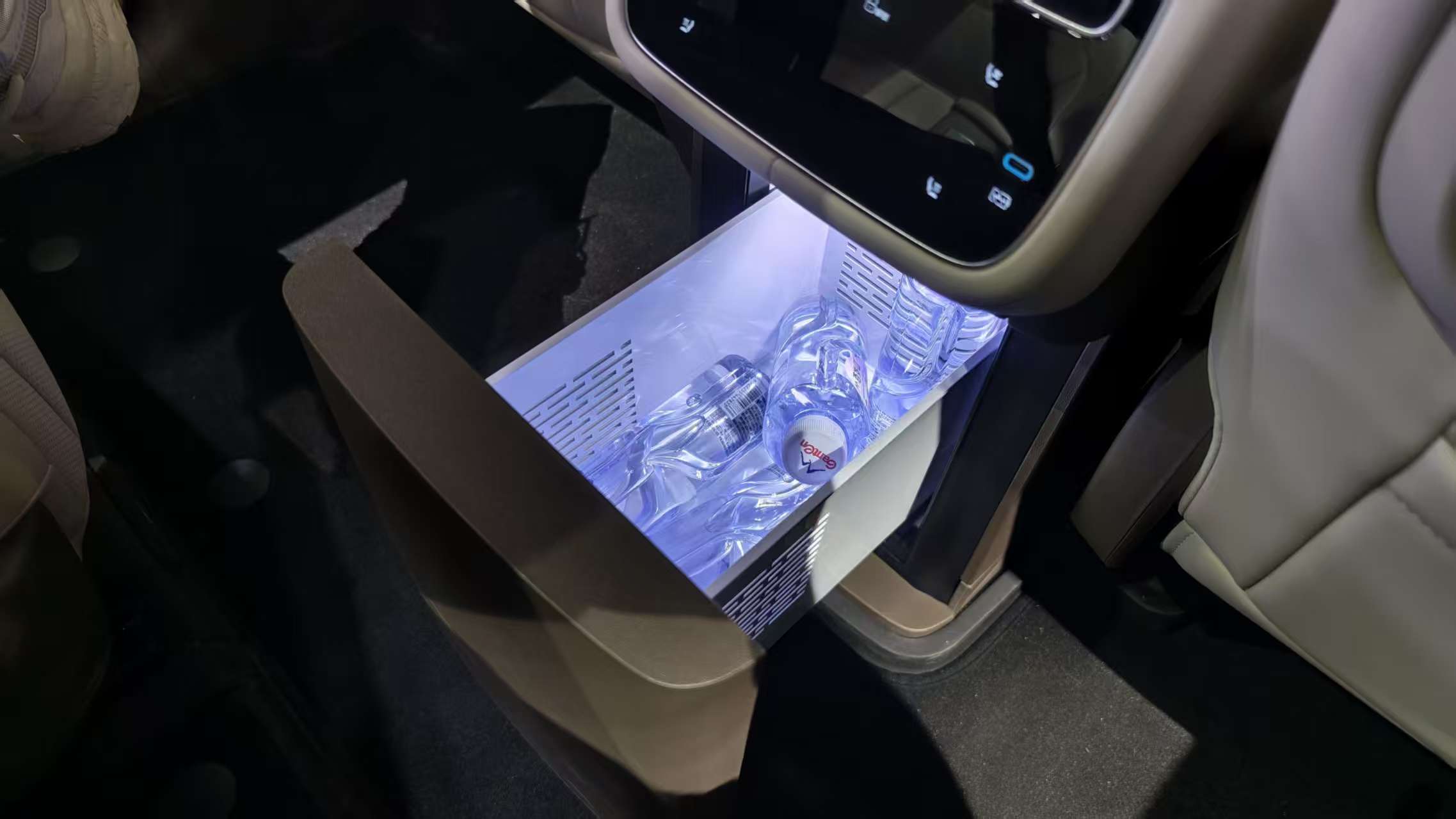 后排配置也不含糊,17.3寸娱乐屏、二排小桌板、11L智能冷暖冰箱都安排上了。还有前排双50W无线充电、车载香氛、128色氛围灯、20扬声器帝瓦雷音响,不管是通勤还是长途,体验都够豪华。