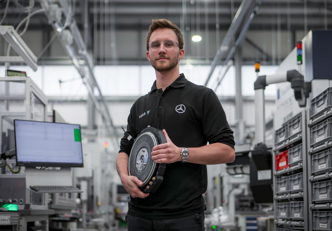 它是由奔驰全资收购的英国 YASA 公司研发的,单台重量仅12.7公斤(差不多一袋大米的重量),但持续输出功率能达到350-400千瓦,功率密度高达每公斤59千瓦!