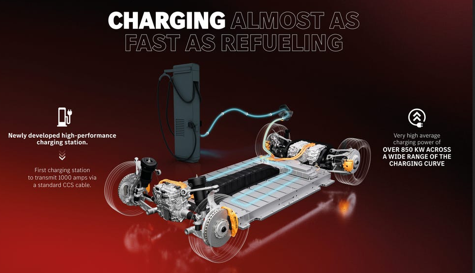 目前主流电动车大多采用 400 伏架构,而800伏架构的优势在于,在相同电流下,电压翻倍能让充电功率直接翻倍,同时电缆的截面积可以减小,整车重量也能跟着减轻——这就是为什么AMG GT XX能用上更轻的电缆,还能实现超850千瓦的平均充电功率。