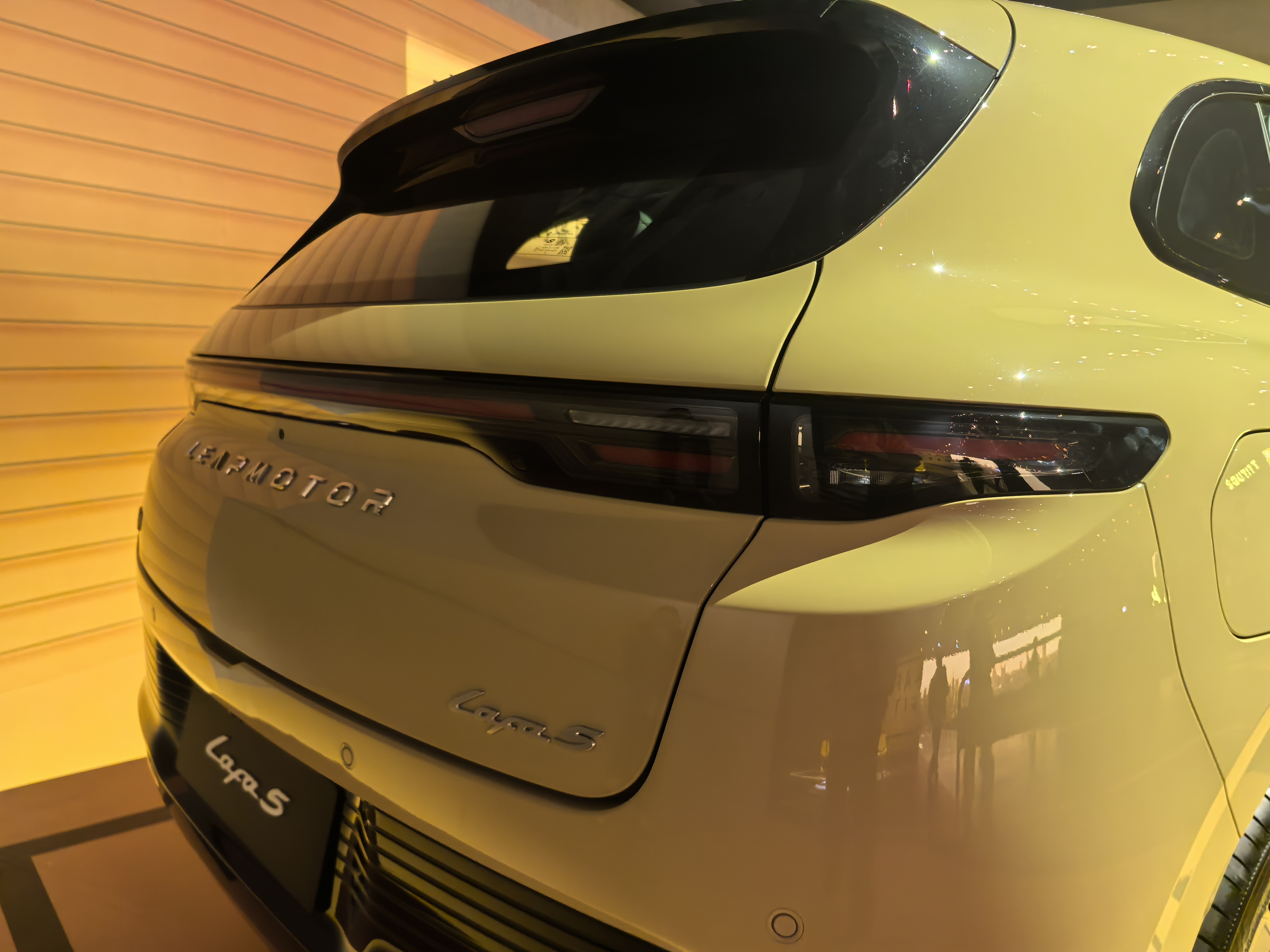 车尾的设计同样用心,层次感特别清晰。上方的一体式车顶扰流板里嵌着高位刹车灯,下方的贯穿式尾灯和前大灯相呼应,点亮后灯光均匀,晚上看特别有辨识度。而且尾灯的细节处理很到位,灯带的造型和前大灯保持一致,形成了“前后呼应”的设计逻辑,能看出设计师在细节上花了不少心思,也体现出零跑在造型设计上的成熟度。