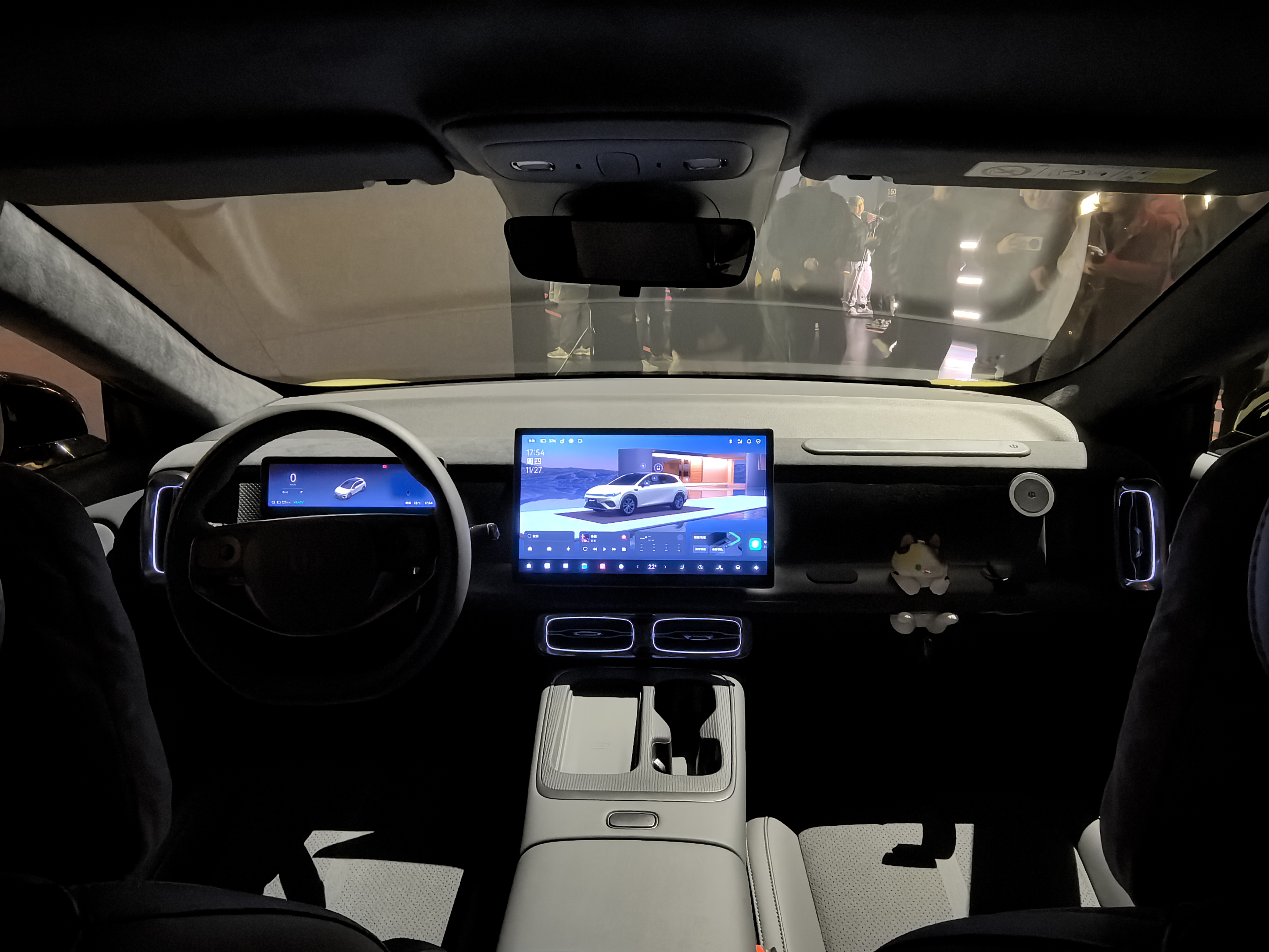不同配置版本的内饰配色还不一样,基础款有速域紫和驰影灰两种选择,既时尚又耐脏;高配款则是竞速灰主题,顶棚和座椅用的是真皮+仿麂皮超纤绒材质,上面还压印了赛道纹理和Lafa5专属字体,运动氛围一下子就上来了,特别对年轻人的胃口。