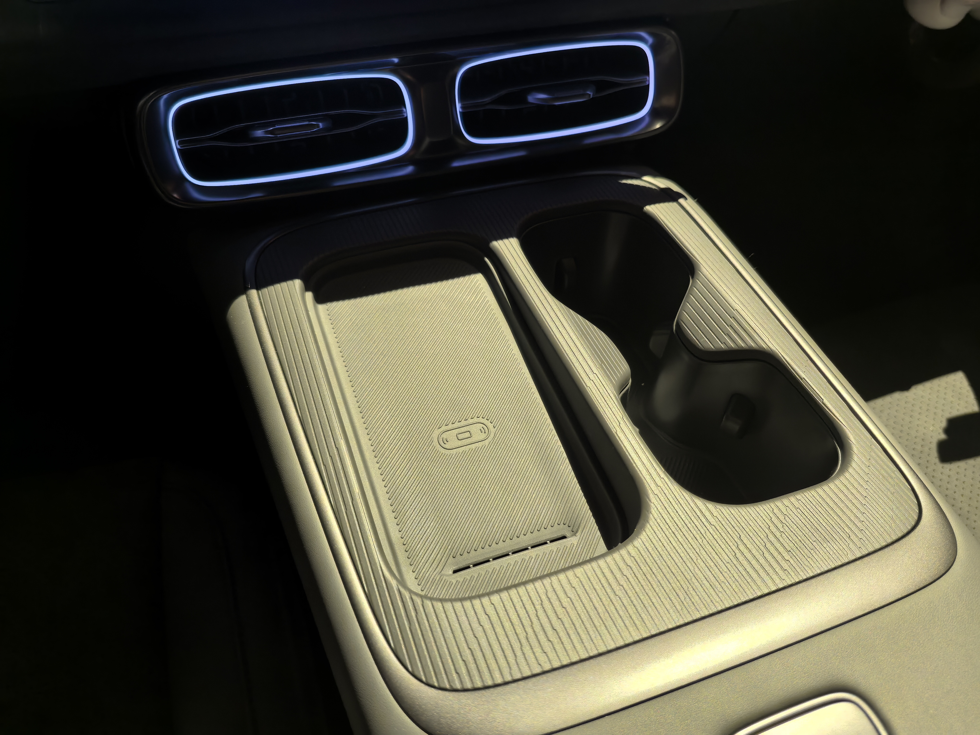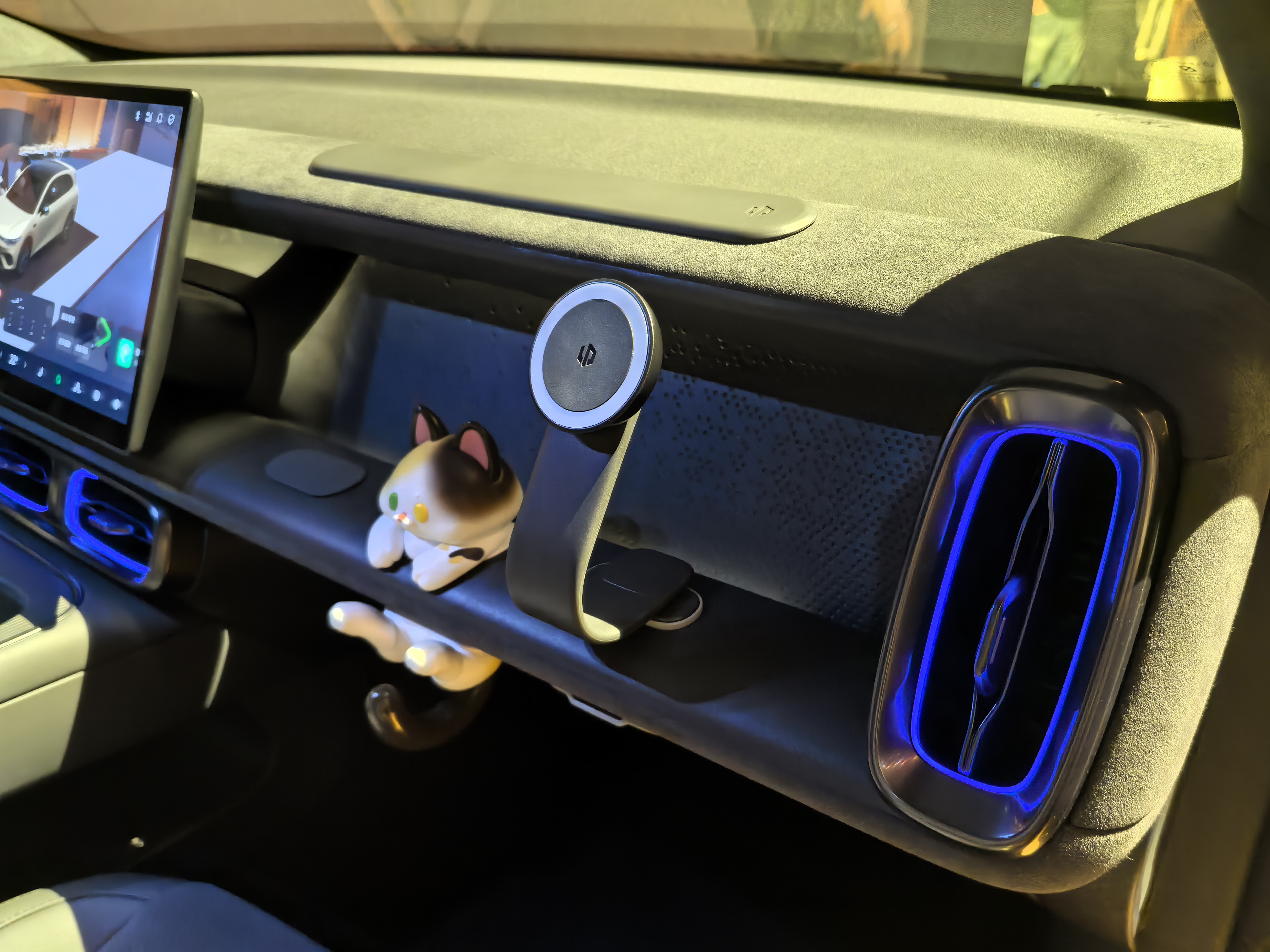 车内最让人眼前一亮的,是副驾驶前方的“魔术扩展岛台”。这个岛台上下有6个开孔,能搭配专门的周边产品,比如放个储物盒、手机支架,或者加个小桌板,实用性特别强。这种模块化的设计思路很灵活,能根据不同的用车场景调整,比如平时通勤可以放手机支架,周末带家人出游能加个小桌板放零食,大大提升了座舱的使用灵活性。