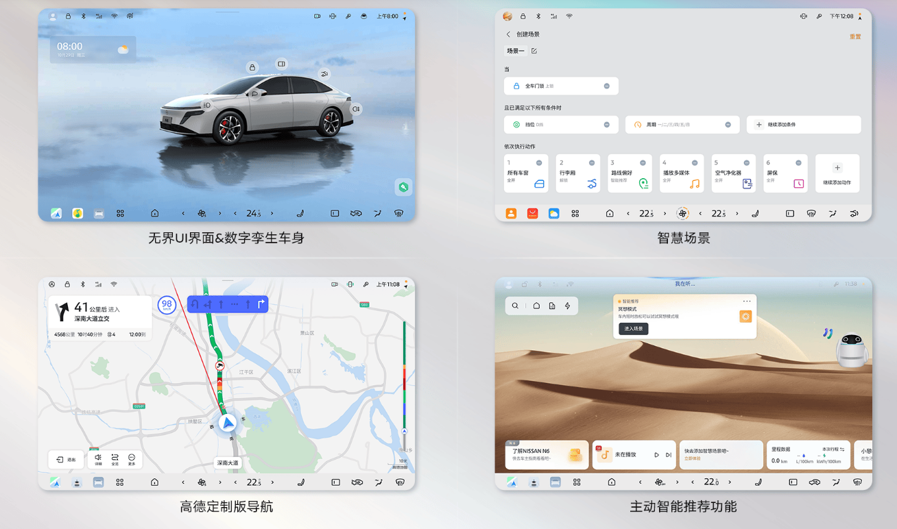 AI语音助手“小尼”深度融合讯飞星火与DeepSeek推理大模型,支持川粤等方言交互,无需切换语言即可精准识别指令,同时具备前后排四音区识别功能,不同座位的驾乘者可同时发出指令,互不干扰。系统内置无麦K歌功能与千万曲库,搭配科大讯飞调校的音响系统,能够满足家庭出行的娱乐需求;儿童专属APP的加入,也让带娃出行变得更加轻松。
