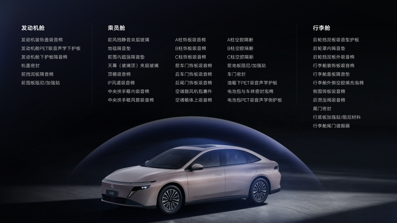 此外,N6搭载的全域智能防晕车技术2.0,通过智能坡道补偿、弯道稳控、智能城市蠕行等功能,从动力、底盘、座舱等多维度协同优化,有效降低了晕车概率。实测中,容易晕车的乘客乘坐两小时车程后,未出现明显的不适感,这一表现对家庭出游而言尤为重要。车内静谧性同样出色,怠速时噪音仅为38.5分贝,接近图书馆的安静水平,全车近100处吸音材料覆盖,高速行驶时的风噪与路噪控制在合理范围,不影响车内人员正常交流。