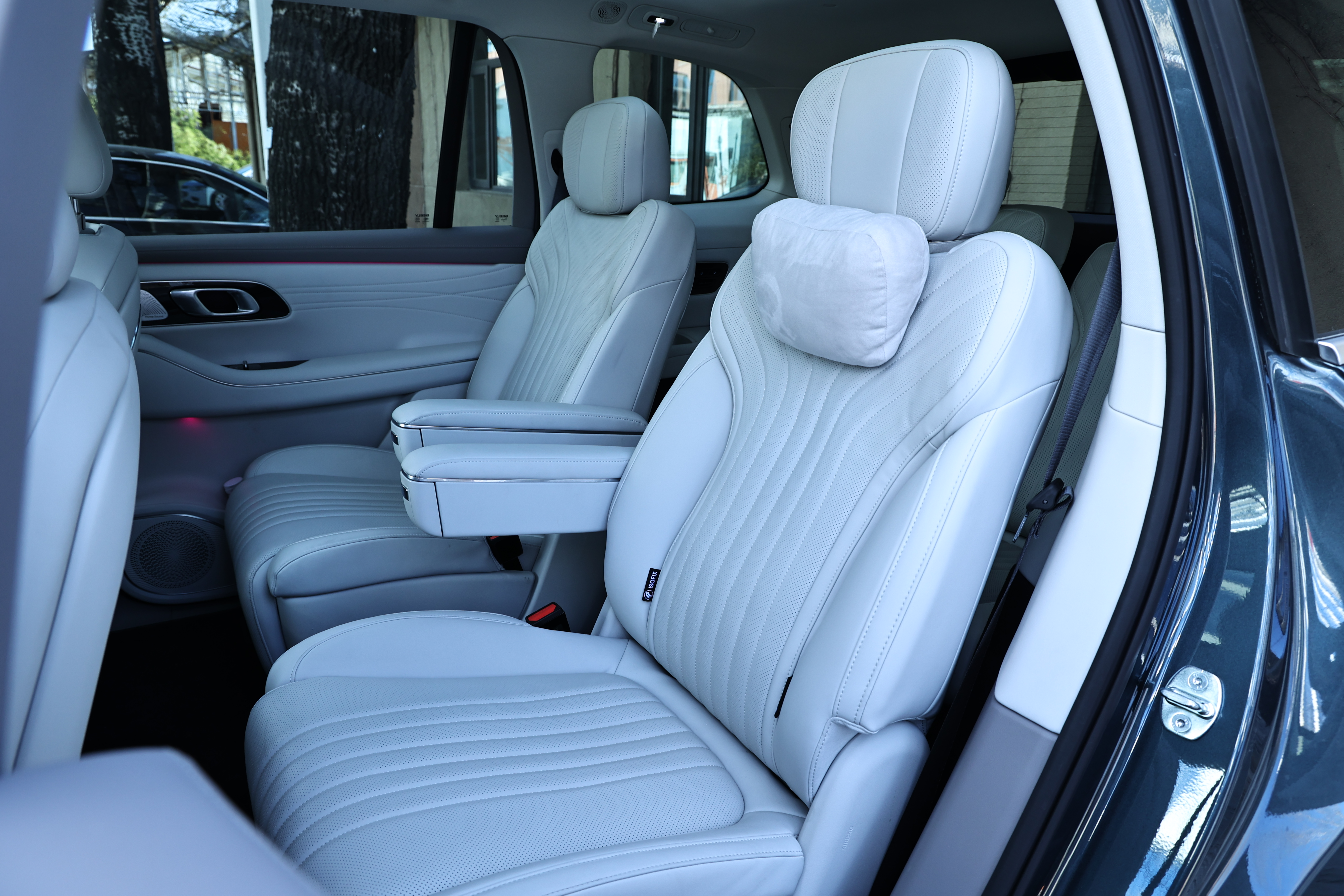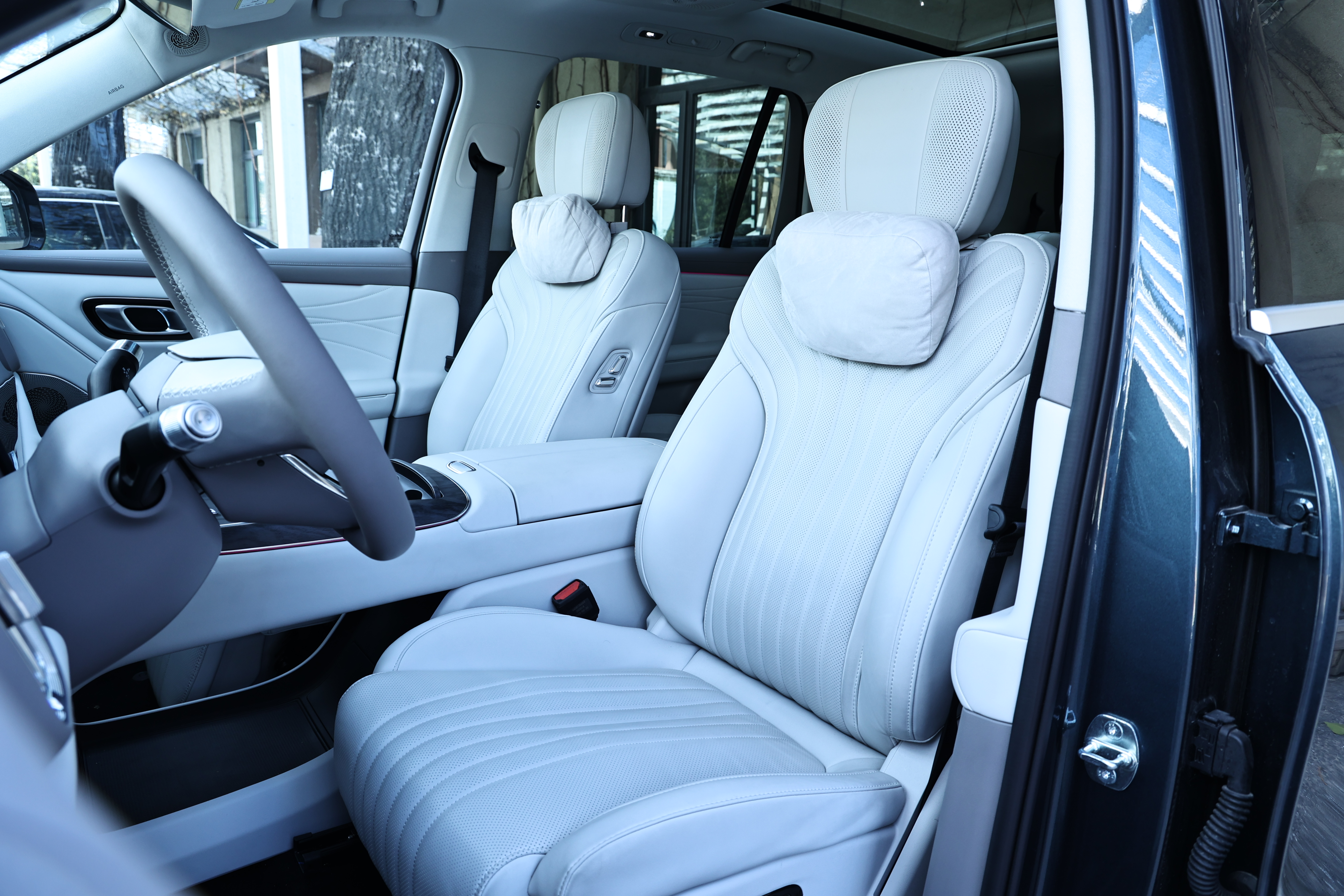 第一排主打“驾驶与休憩兼顾”,主驾配备转向自适应侧翼支撑和自适应腰托,缓解长途驾驶腰酸背痛;副驾“宠爱椅”带无缝腿托、加热/通风/按摩功能,化身“移动头等舱”,满足老人或带娃家长的休息需求。