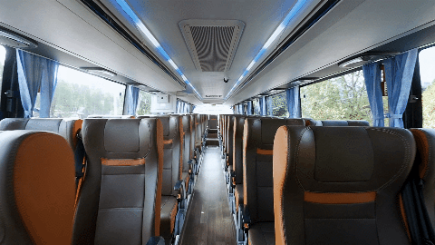 YBL6148H1QE1采用55+1座布局,满足大型团体出行需求。配备多功能方向盘,操作便捷;10m3贯通式行李舱容量充足,足以容纳乘客行李、旅游装备等物品;更值得一提的是,行李舱的大舱门采用电控气动平移式设计,支持遥控操作,装卸行李高效又省力。
