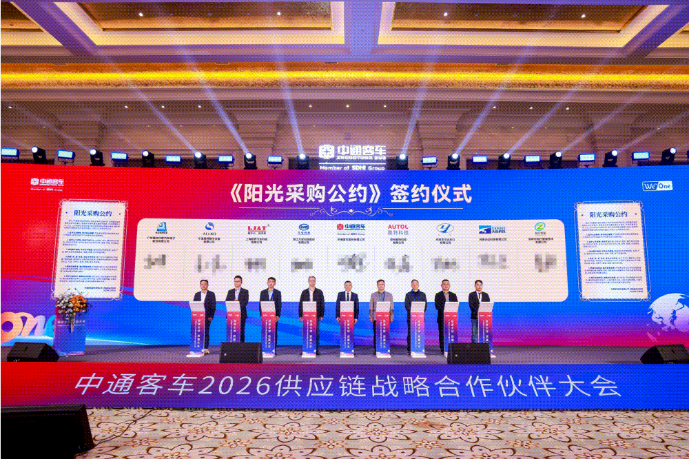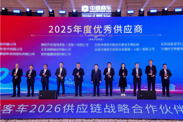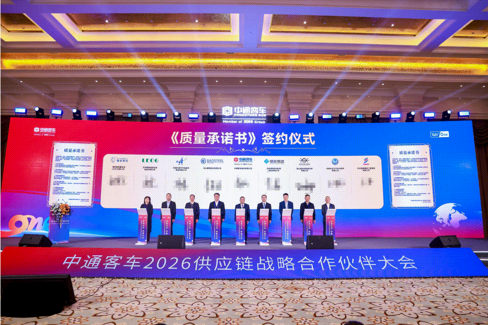 本次大会,中通客车对2025年度最佳质量奖、优秀供应商奖、合作贡献奖、研发协同奖、战略合作奖获得者进行了表彰和嘉奖。现场发布并签署了中通客车质量承诺书、中通客车供应商伙伴阳光采购公约,与全体供应商协力打造高质量供应链体系,助力全球交通运输产业向绿色化、智能化、高端化加速迈进?。