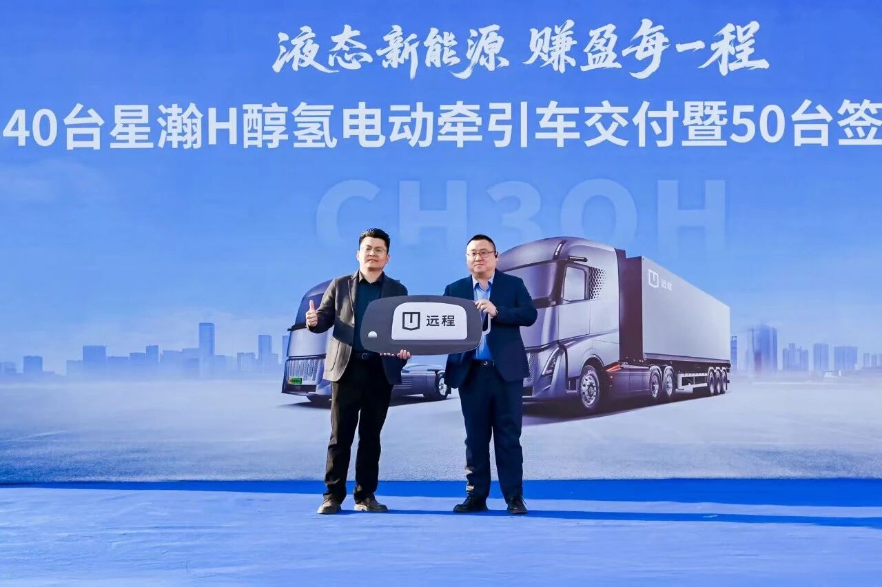 作为中国新能源商用车第一品牌,远程坚持以“醇氢+电动”双技术路线为支撑,布局绿色智能的新一代商用车。依托吉利在甲醇领域20余年积累,远程创新研发了醇氢电动技术,它以液态新能源甲醇为燃料,有效解决了纯电动和氢燃料技术路线在续航、补能、自重、低温衰减及成本等方面的痛点,是电动化的升级。搭载醇氢电动系统的重卡续航里程突破1500公里,且补能时间与燃油车相当,可全面覆盖中长途干线运输场景。