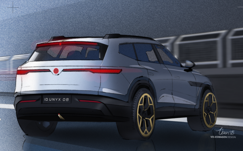车身侧面凸起腰线从前车标无缝延伸至后车门线,强化运动感与视觉张力;极具雕塑感的 D 柱传承大众标志性设计元素,以硬朗轮廓与厚重视觉效果,将品牌安全、可靠的核心 DNA 具象化。车尾细节更见匠心:金色饰条点缀扰流板,隐藏式后雨刷尽显简洁,而集成在高位刹车灯中的发光狼标,则是整车的点睛之笔。