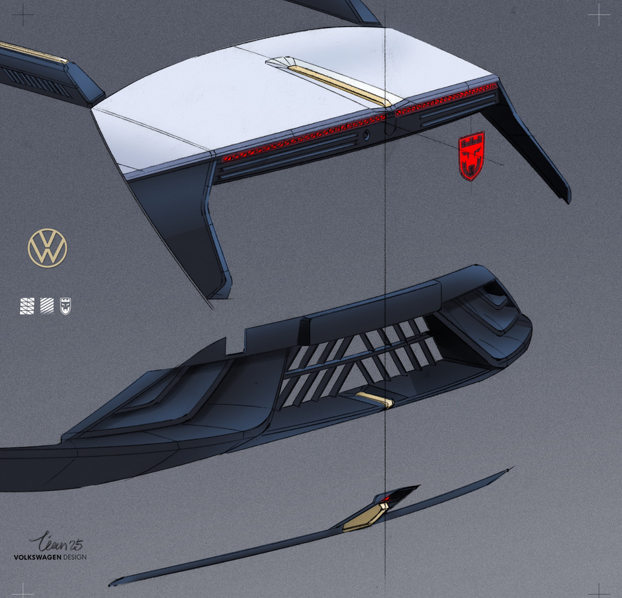 狼标的打磨,更是一场跨越文化与法规的双向奔赴。中国严苛的灯光法规要求 Y0 对称规则,让源自沃尔夫斯堡城徽的 “德国狼” 必须本土化进化。德国造型团队坚守品牌内核,确保狼的威严与力量感;中国曲面设计团队注入东方灵魂,将狼头上方 “王冠” 轮廓从狼堡外墙延伸为长城山峦般的线条,让德式信仰与中式气魄交融共生,实现从 “符号” 到 “图腾” 的升华。灯光研发团队经数十轮光影模拟与结构调整,让狼标光亮既符合法规要求,又能在昼夜场景中清晰醒目。