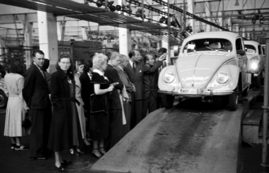 1945 年,首款甲壳虫正式投产。圆润无华的造型、后置风冷发动机的设计,彻底打破 “汽车是奢侈品” 的认知。