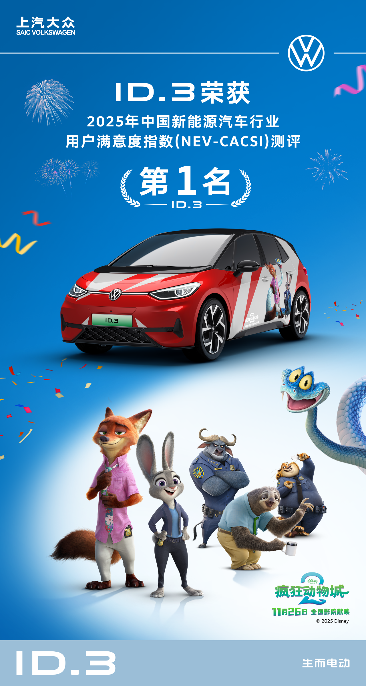2025年,上汽大众ID.3第三次荣获NEV-CACSI纯电动紧凑型轿车用户满意度冠军,这个成绩印证了其新能源产品的用户认可度。从单一车型的口碑积累,到全序列的体系化布局,上汽大众的新能源“第二曲线”,正在加速破局。