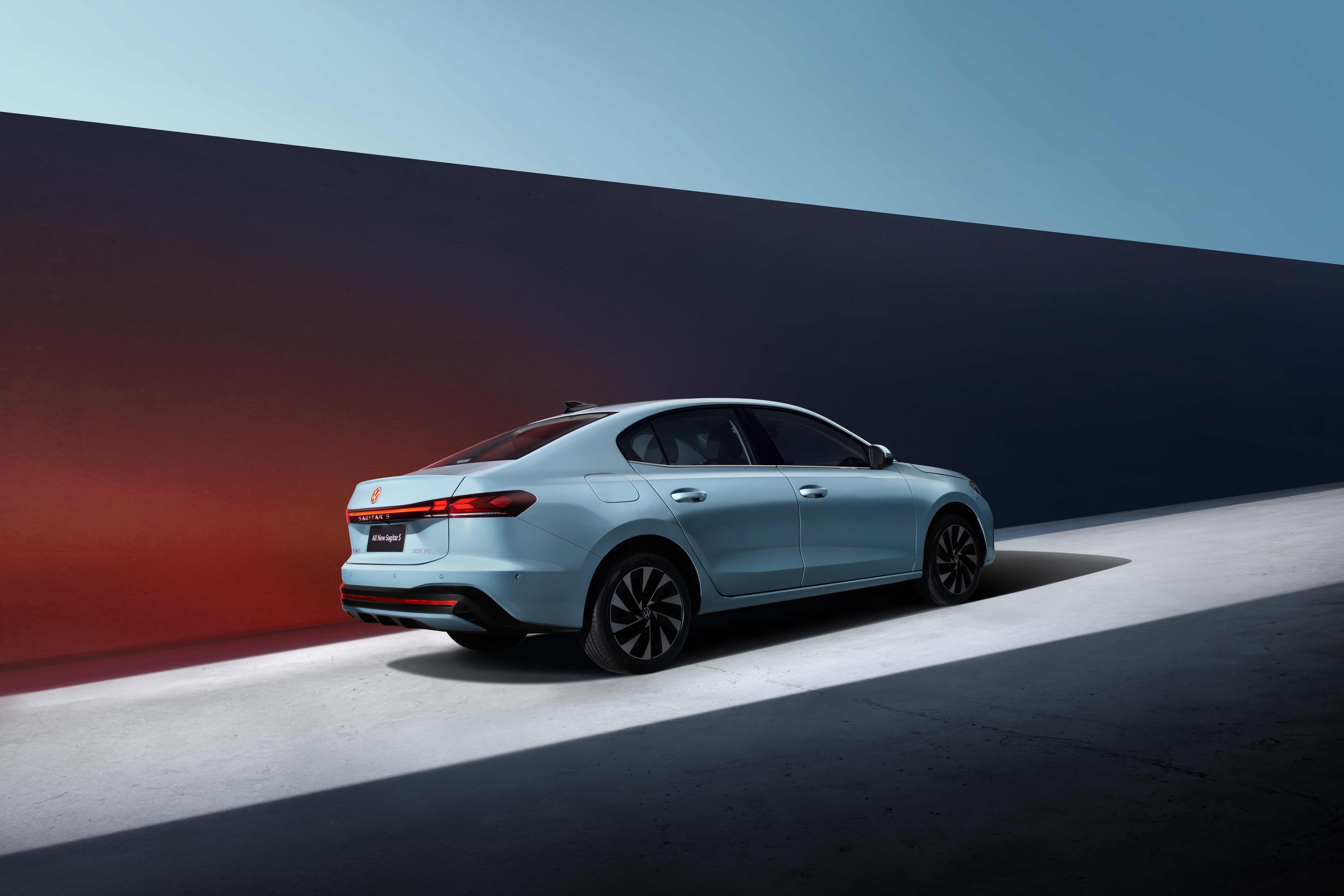 车身侧面严格遵循"家用黄金比例",简洁整体的特征线配合舒展的型面变化,营造出越级的高级感。溜背式造型搭配微微上翘的"小鸭尾"设计,在保证后排头部空间的同时,勾勒出动感流畅的尾部线条。车尾部分整体造型更显精致与整体感,高辨识度的动感交互贯穿式后组合尾灯,点亮后显著提升了整车的科技感与档次感。