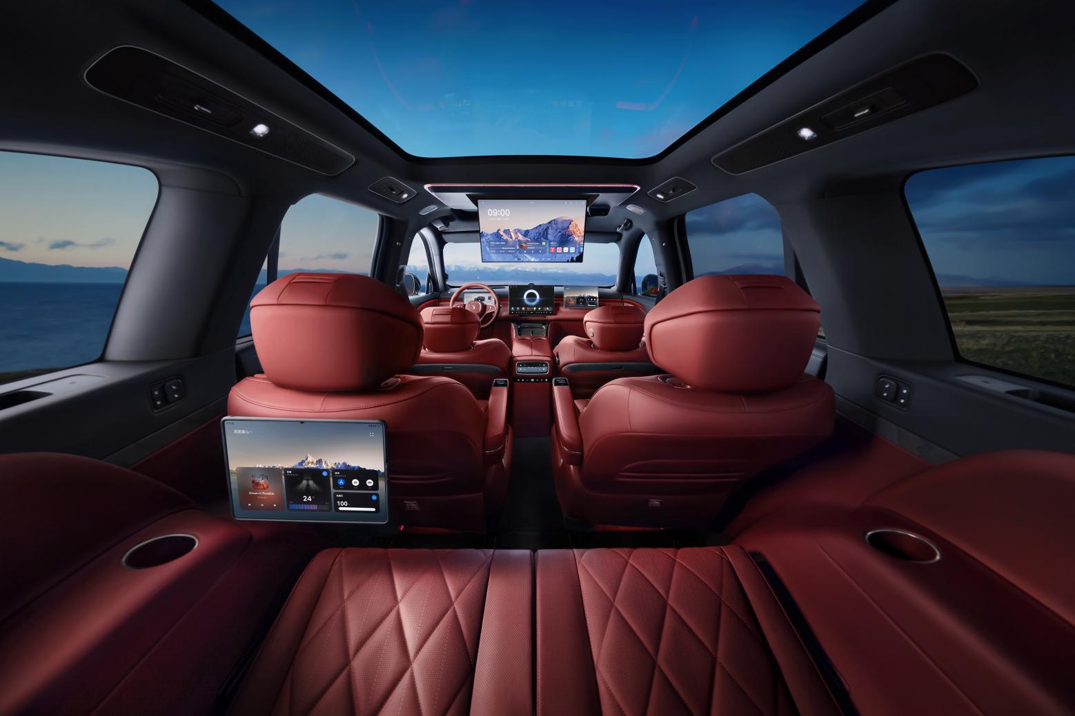 智能座舱重点优化了商务出行相关功能,新增二排扶手屏与语音控制座椅横滑功能,兼顾精细化调节与便捷操控,适配商务接待中后排乘客的个性化需求,让座椅调节更加优雅;优化座椅联动逻辑与二排零重力模式体验,让座舱空间切换更顺畅,无论是商务洽谈还是途中休憩,都能快速切换至理想状态;升级后的迎宾照明功能带来更强的仪式感,全方位提升高端商务人群的出行品质。