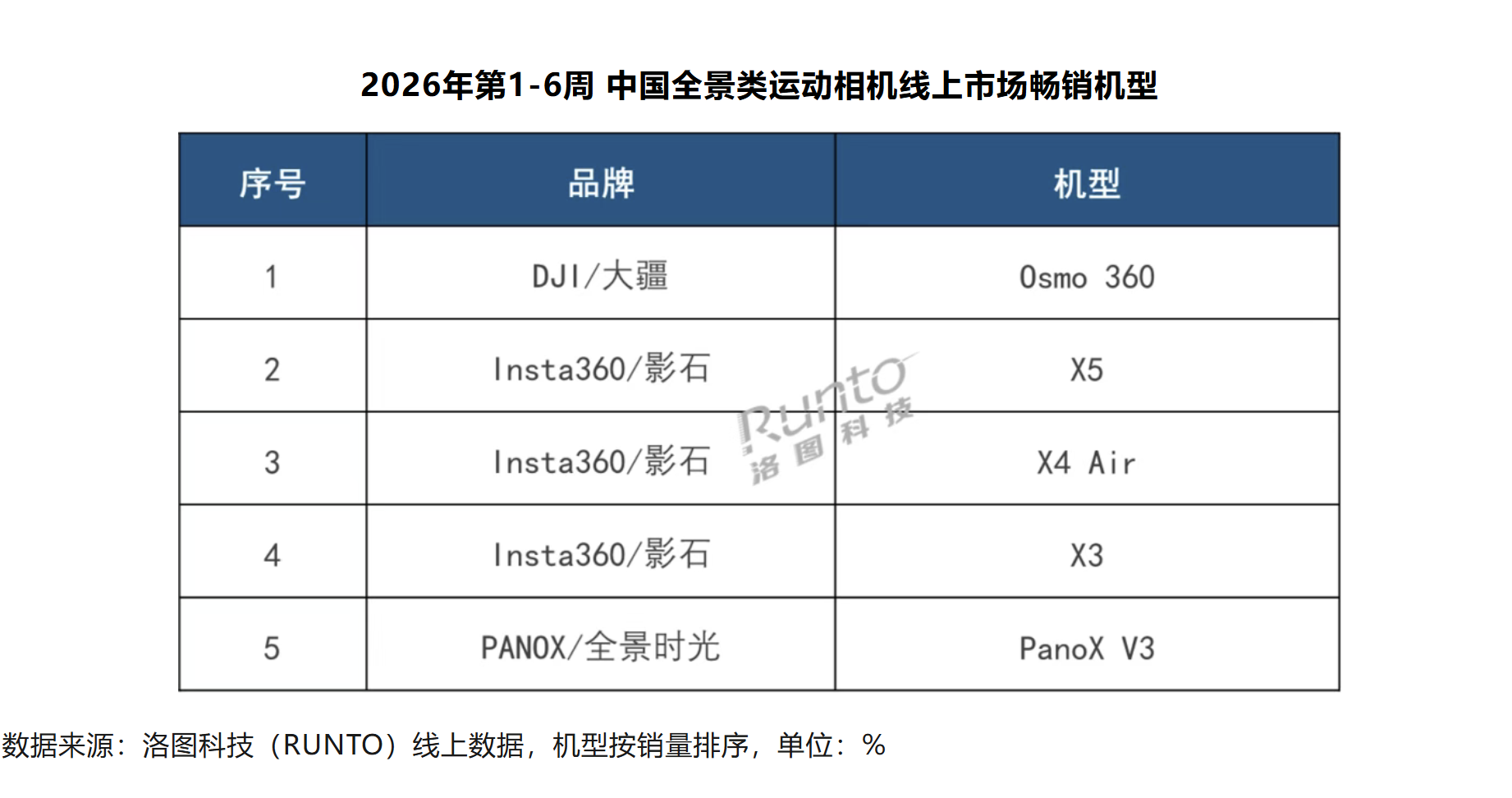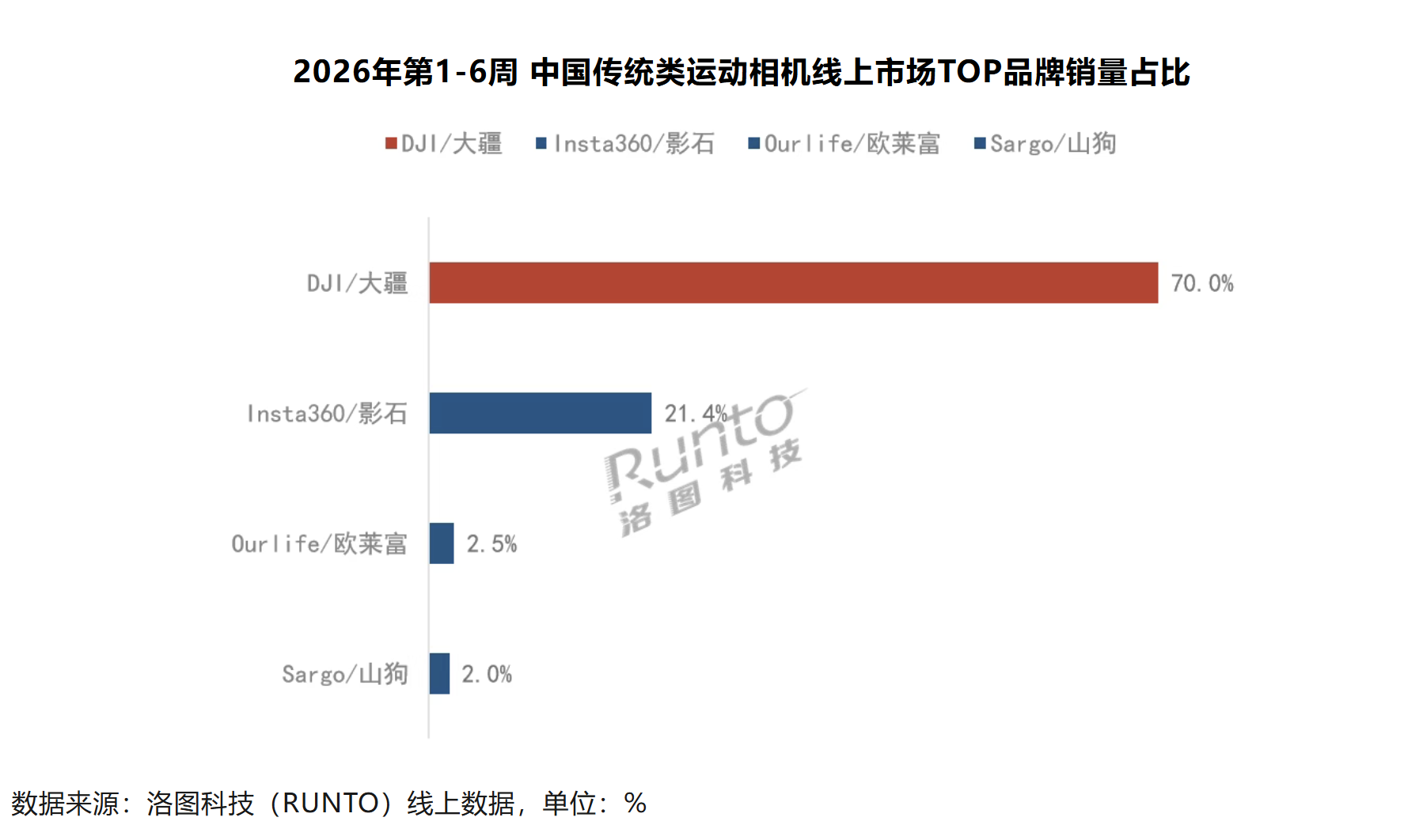 2026年第1到第6周,短短一个多月时间,中国运动相机线上市场卖了33.1万台,销额7.9亿元,看似一片红火,但背后的格局早已定死,马太效应拉满,强者愈强。