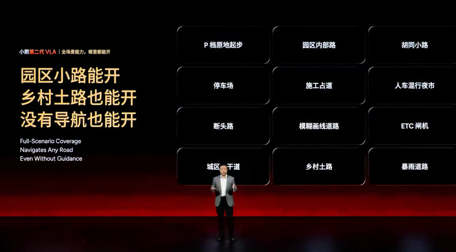 但小鹏的第二代VLA,直接砍掉了多余的转译环节,实现了视觉信号到车辆控制的端到端直接输出,简单说,就是让车的“思考”和“行动”同步,模型运行速度直接提升12倍,反应快到像人类的条件反射。