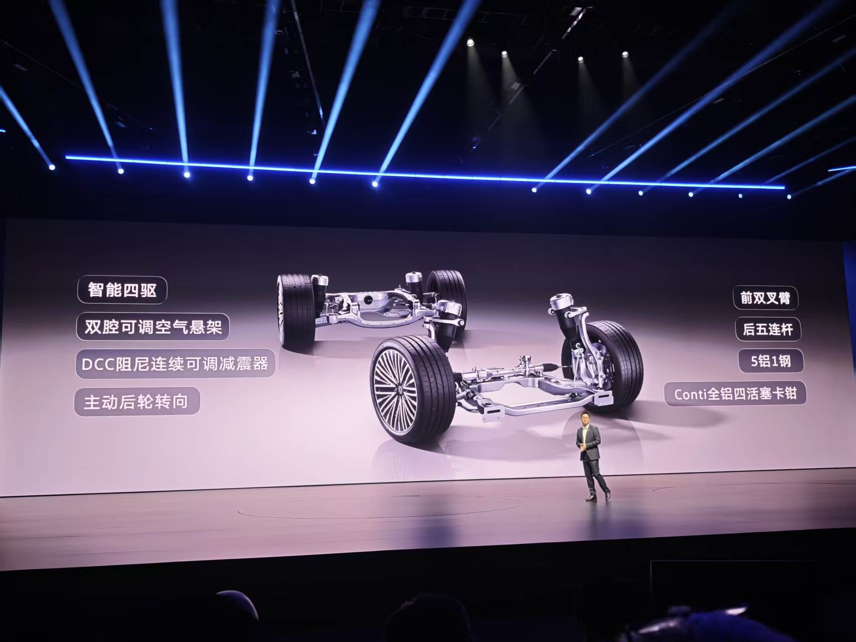 而大众,作为百年车企,在底盘调校、安全品质上的积淀,是新势力短期内无法超越的。ID.ERA 9X的行云智能底盘,采用前双叉臂、后五连杆独立悬架,大量使用铝合金材质,兼顾强度和轻量化;主动后轮转向功能,让这台5.2米长的大型SUV,转弯半径比Polo还小,市区泊车、窄路会车都很灵活;双腔空气悬架和DCC电控减振系统,每秒数百次调节,提前15米识别路面坑洼,过滤90%以上的颠簸,老人孩子坐着不晕车。