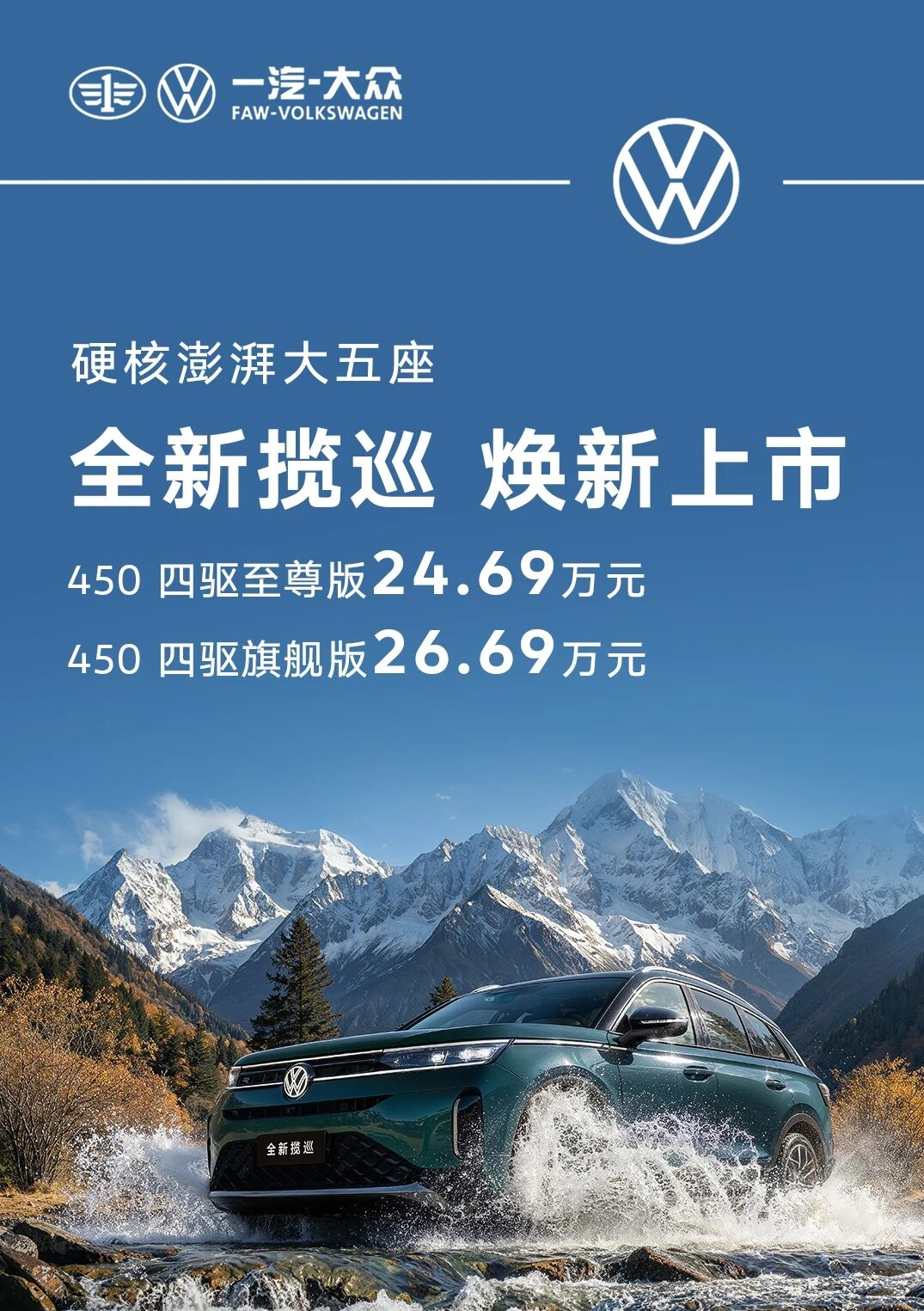 3月31日,一汽-大众全新揽巡焕新上市,官方指导价24.69-26.69万,带着一堆升级点砸进中大型SUV市场。很多人会问,现在新能源卷成这样,一台燃油SUV还能玩出什么新花样?大厂是不是在摆烂,随便改改外观就敢叫“焕新”?