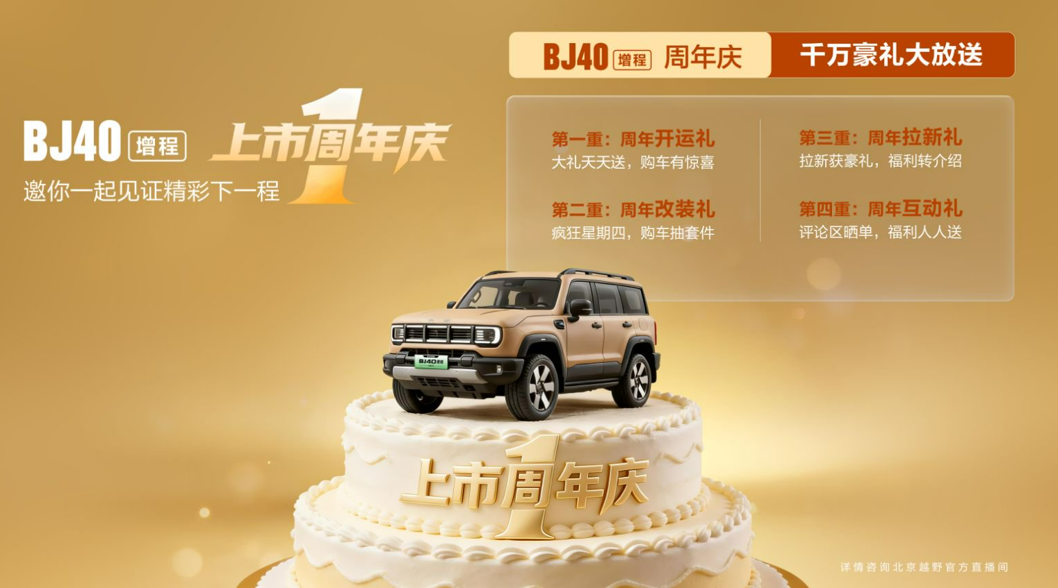 一年只是起点,5.3万车主的信任,为BJ40增程奠定了坚实基础,也让我们看到中国硬派越野新能源化的无限可能。随着技术升级、产品矩阵完善与用户生态构建,相信它会继续领跑细分市场,带着更多用户奔赴山海,让“一城一野一40,增程相伴赴山海”从口号变成触手可及的生活方式。