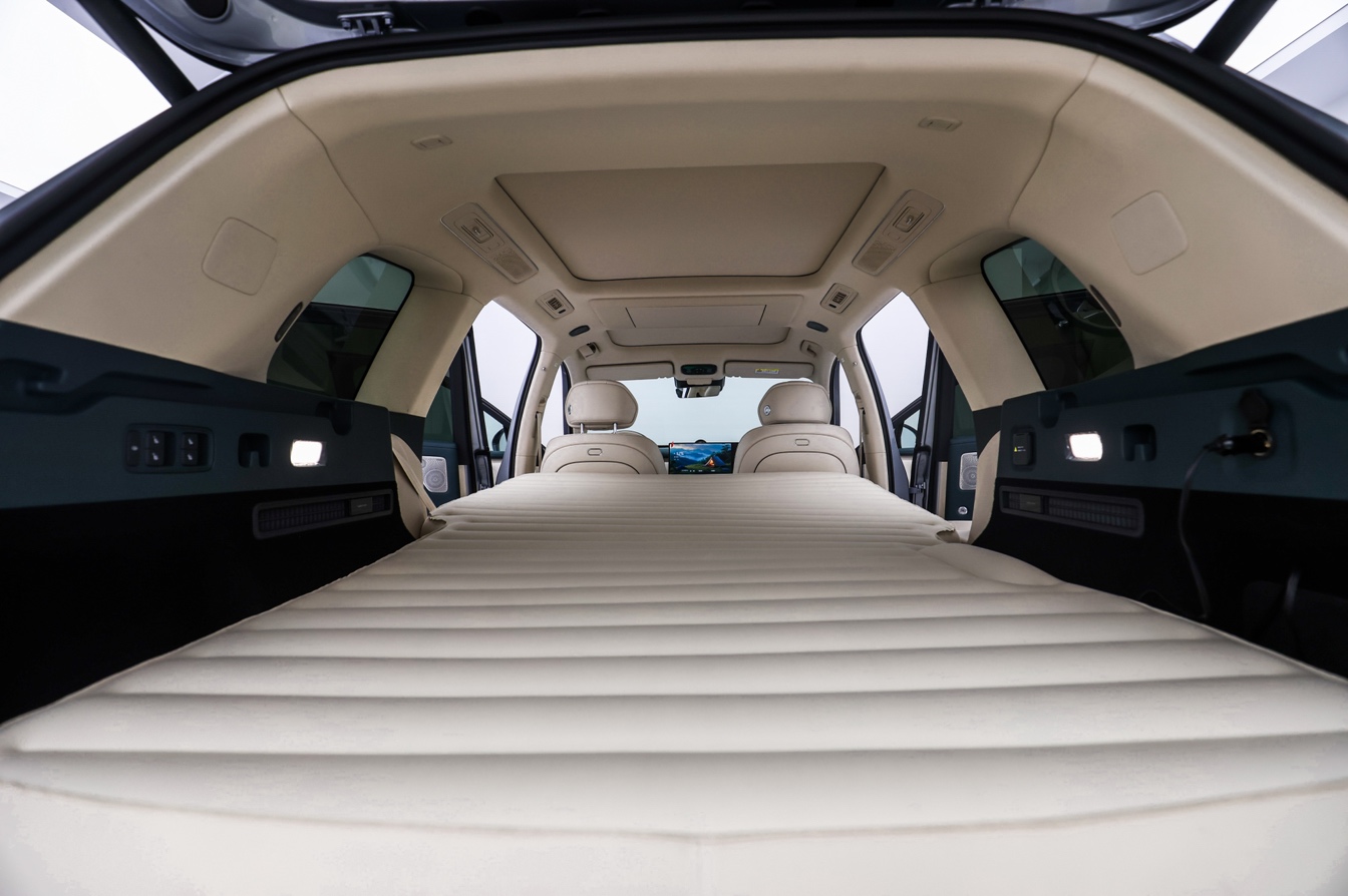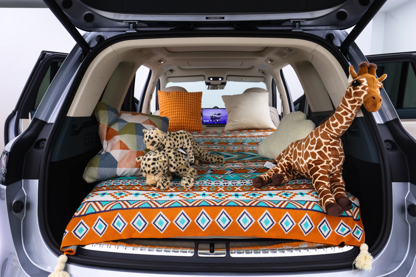 岚图泰山X8解决了大部分用户“座椅放倒-装床垫-充气-铺床垫”的繁复操作,仅在屏幕轻点,即可实现“二排双零重力座椅下沉放平-智能床垫自动充气铺展”,全程仅用60秒,即可享受2.1米大床房。