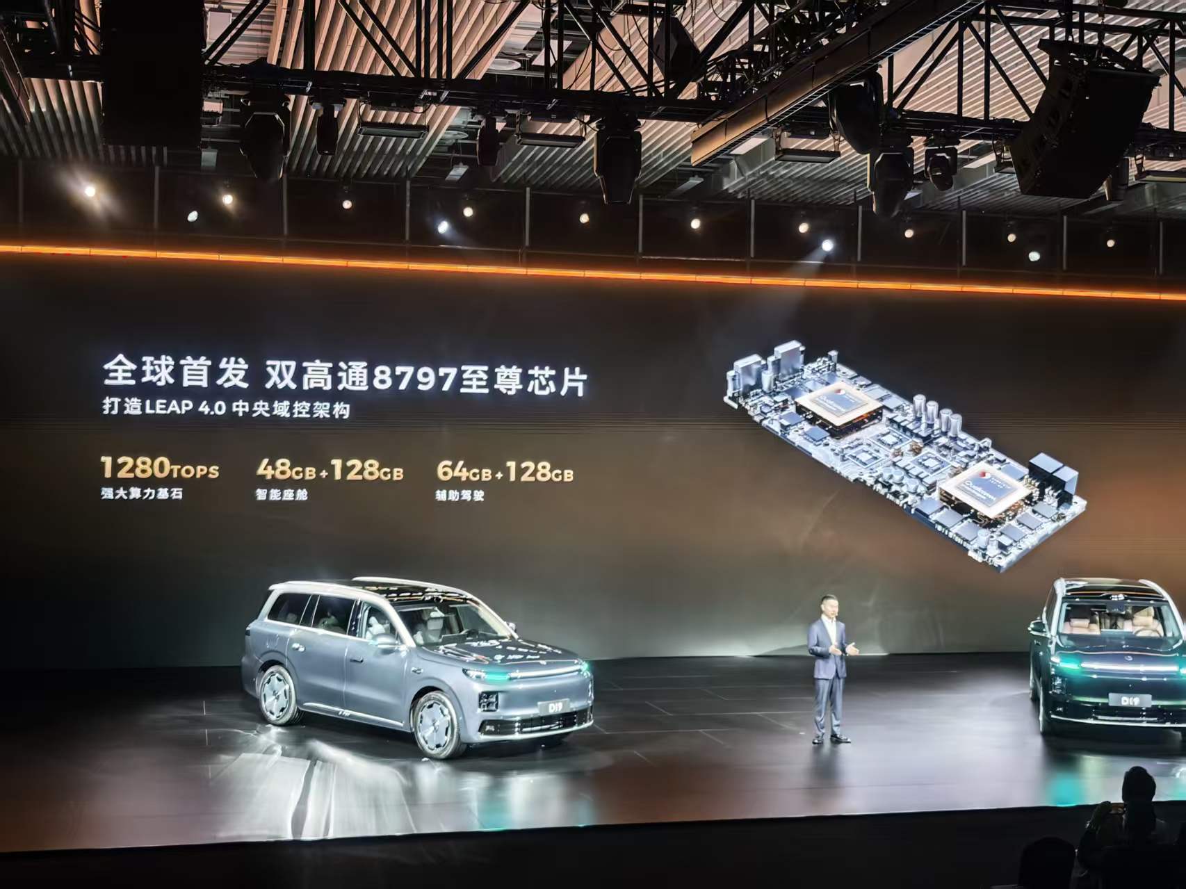 它搭载了行业首发的双高通8797舱驾一体芯片,1280TOPS的算力,不仅能满足当下所有智能功能的需求,还预留了5年的升级冗余,后续通过OTA升级,就能实现更多新功能,不用因为算力不足而落后于时代。