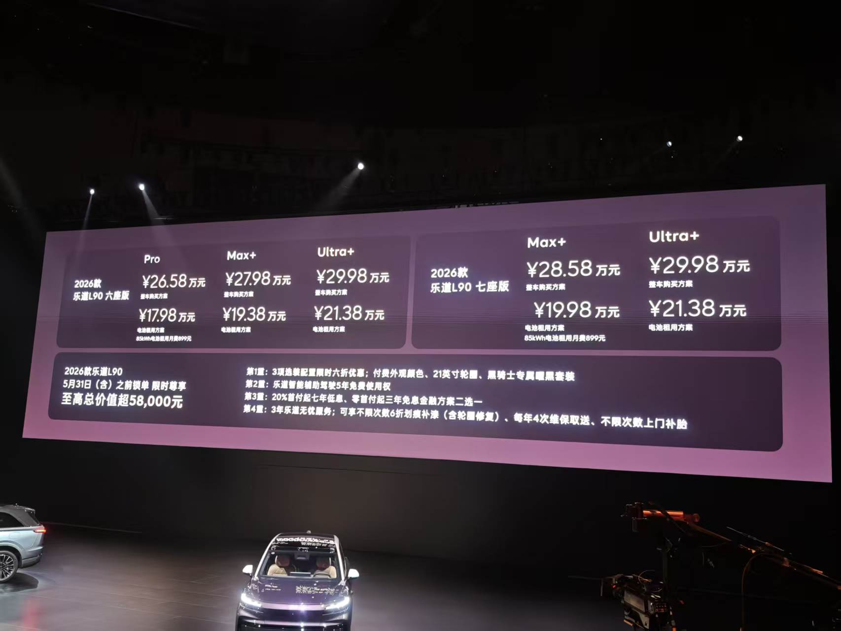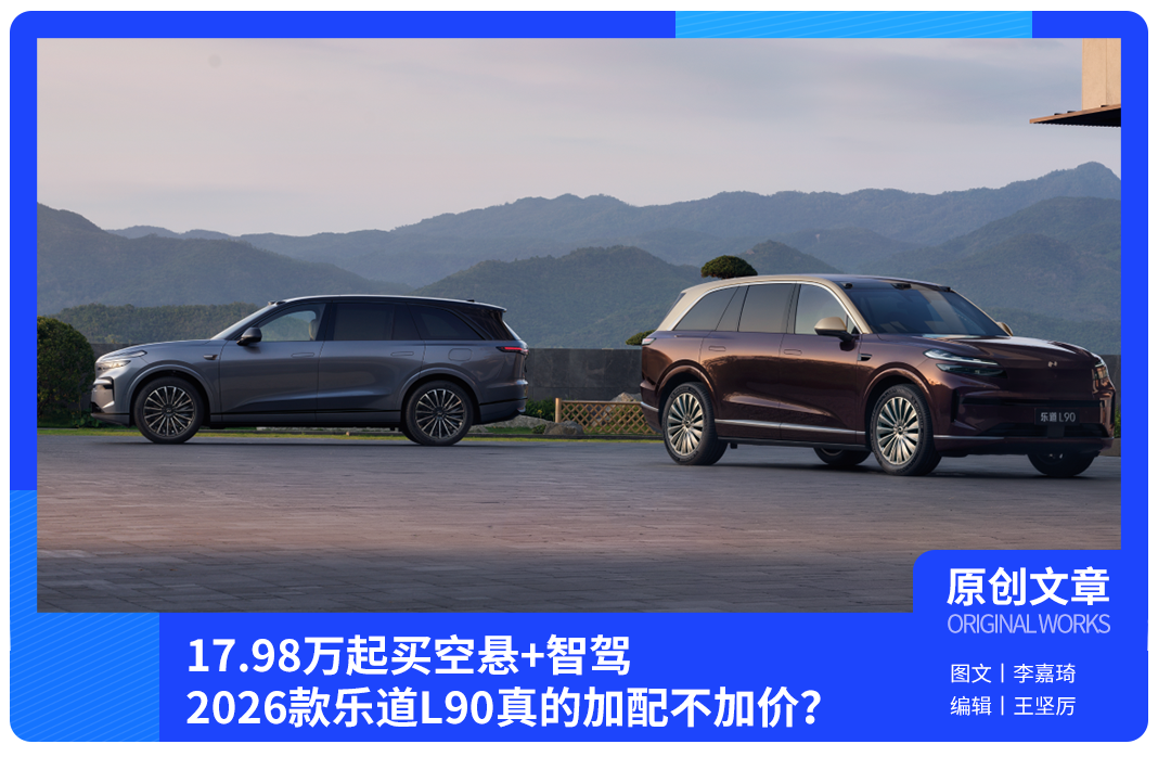 2026款乐道L90正式上市,官方指导价26.58万元起,还能选BaaS电池租用方案,车价直接降到17.98万元起。
