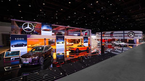 焕新格栅设计构筑全新展台,12款传奇座驾呈现“奔驰在每个时代”